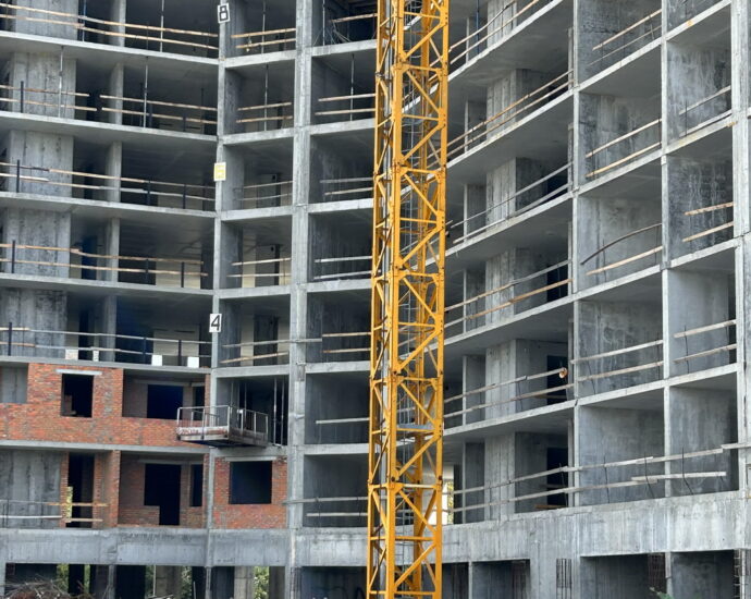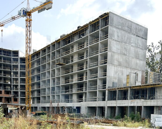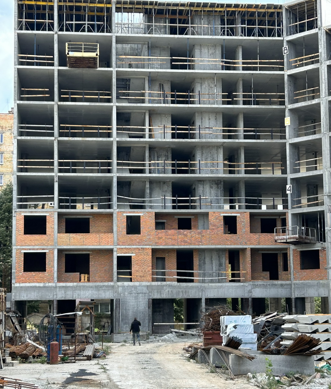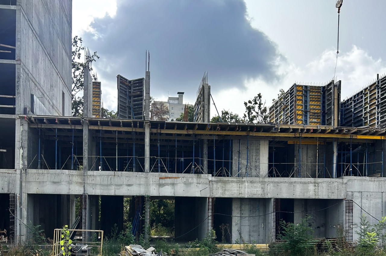 - In sections 1 and 2, work is underway for concreting vertical elements of load-bearing structures on the ninth floor.