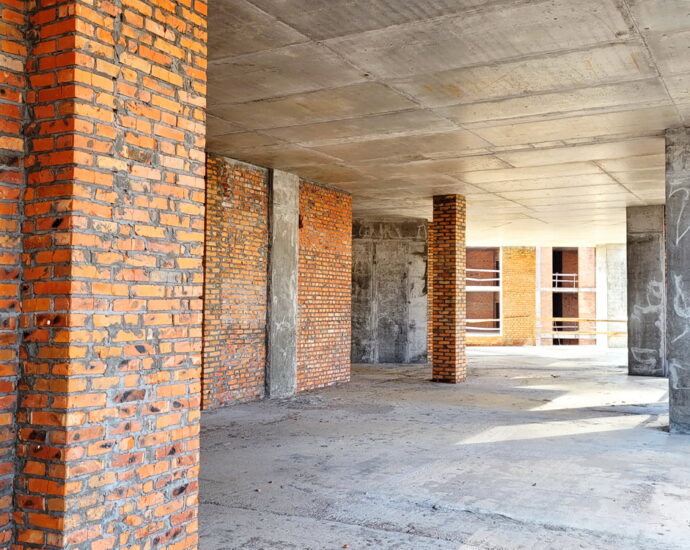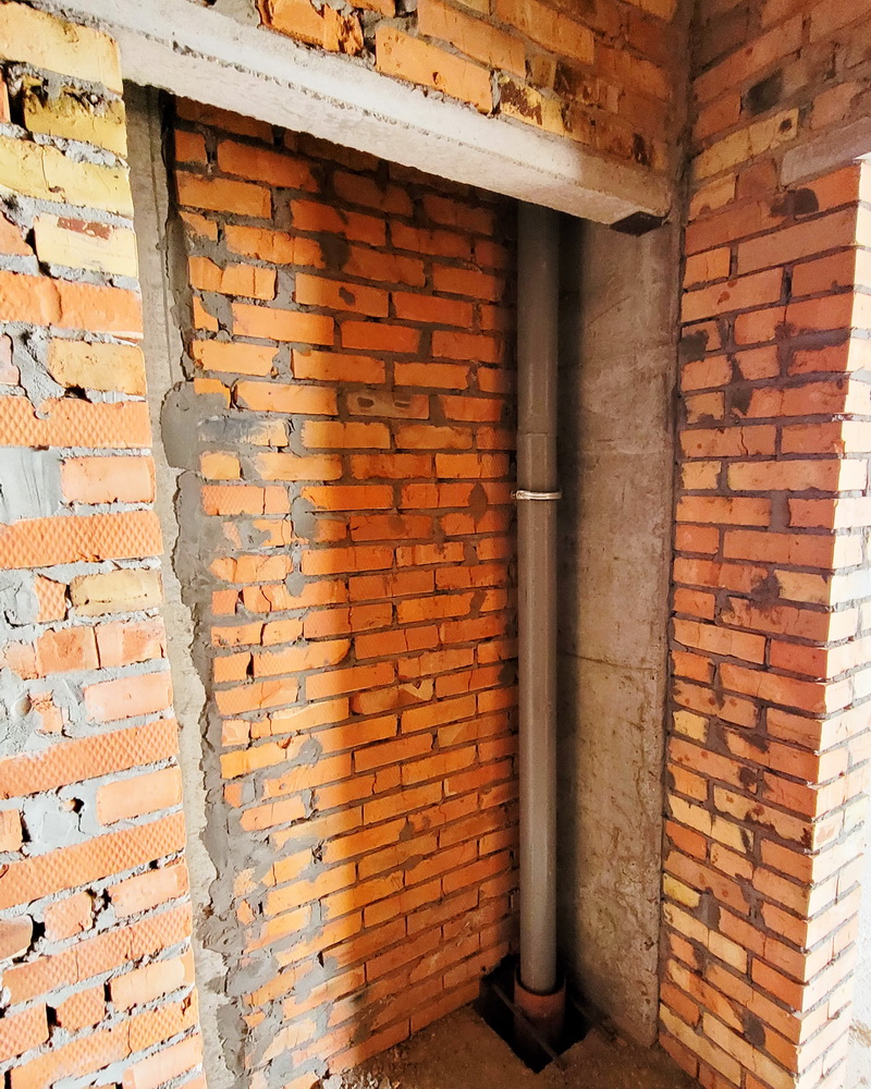 The bricklaying of internal and external brick walls on the upper floors is completed.