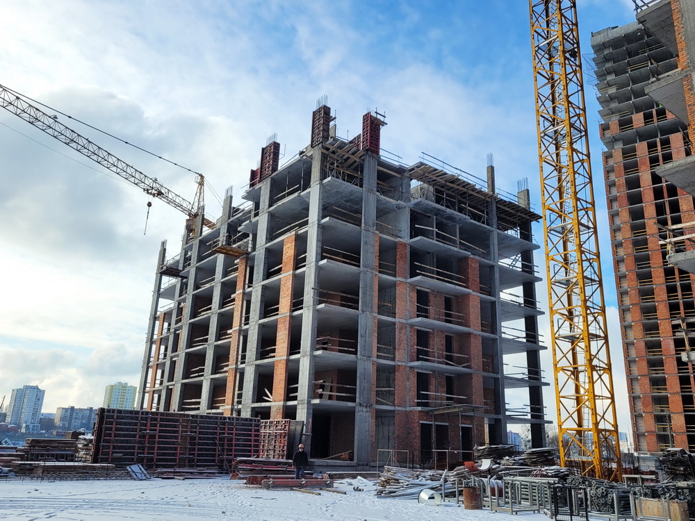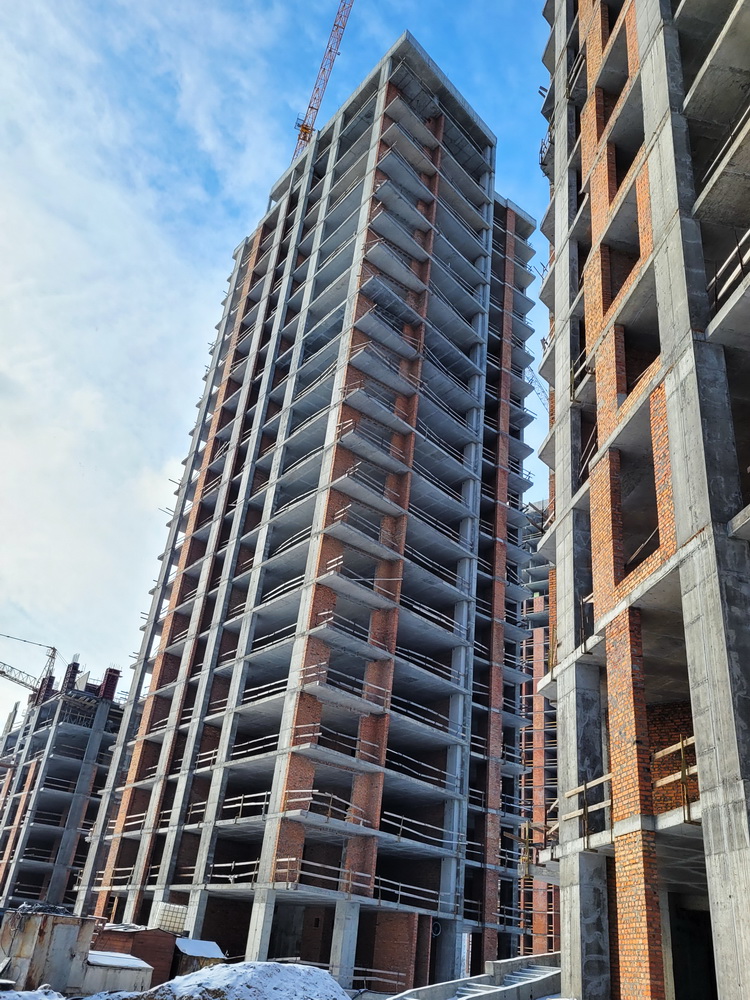 ✅ The construction of the monolithic building is ongoing. The construction of the 7th floor has been completed, the slab between the 7th and 8th floors has been poured, and the reinforcement and concreting of the vertical structures of the 8th floor are in progress.