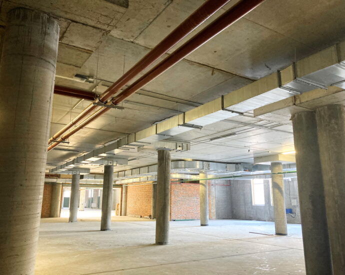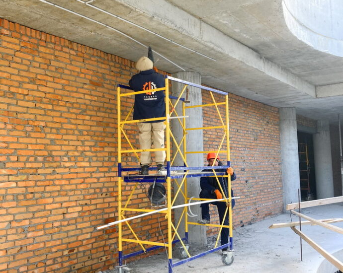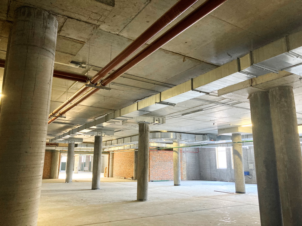 ✅ Completing brick wall laying, industrial floor construction, and installation of lights.