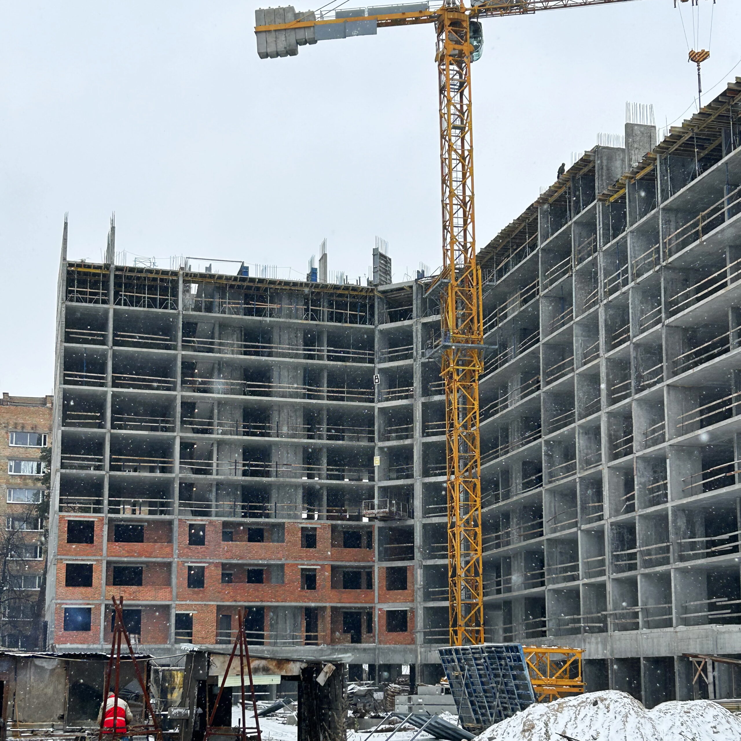 - Section 3: Completed pouring the ceiling slab between the 10th and 11th floors. We are conducting concrete work on the vertical elements of the load-bearing structures on the 11th floor.