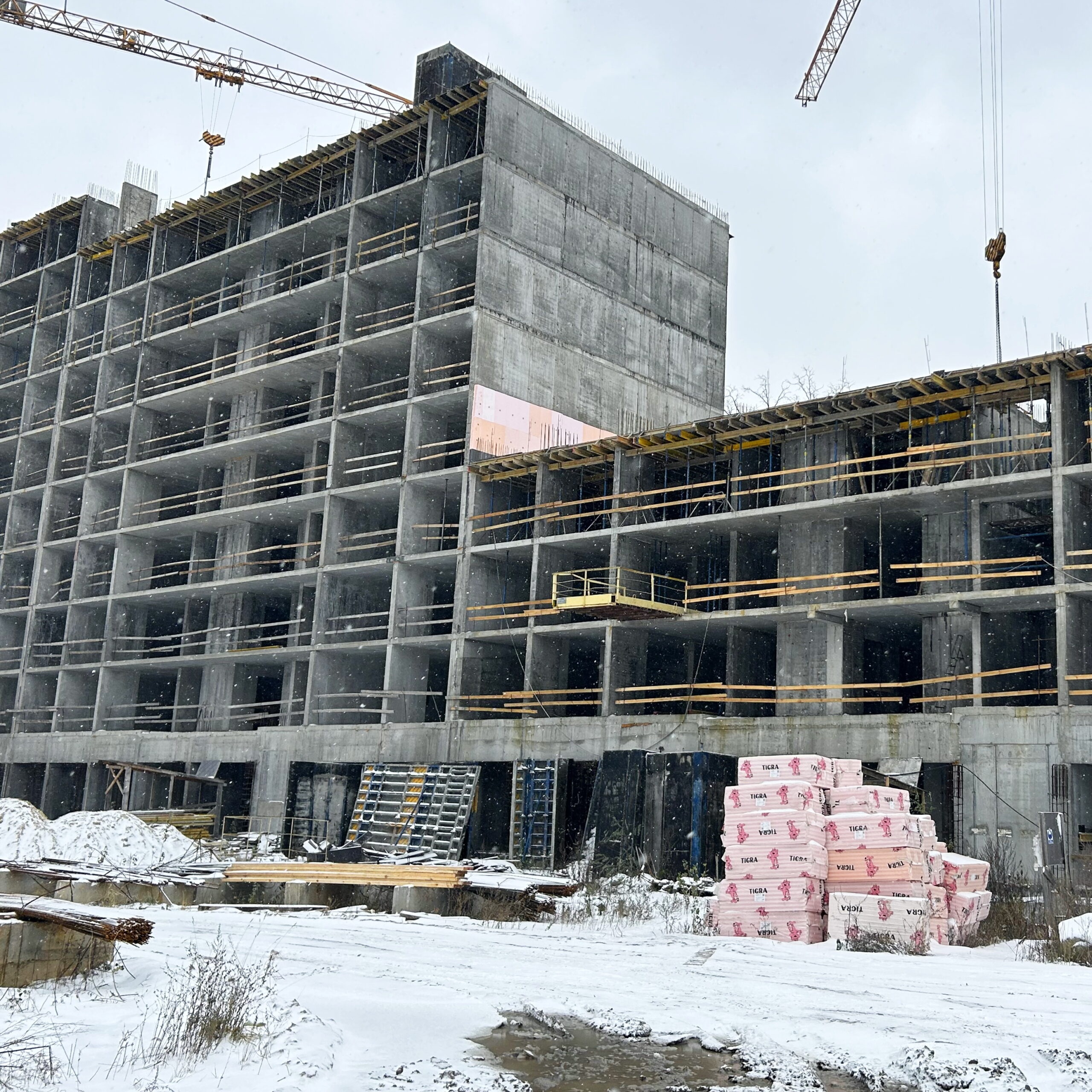- Section 3: Started concrete work on the vertical elements of the second floor. We are constructing the ceiling structures for the third floor.