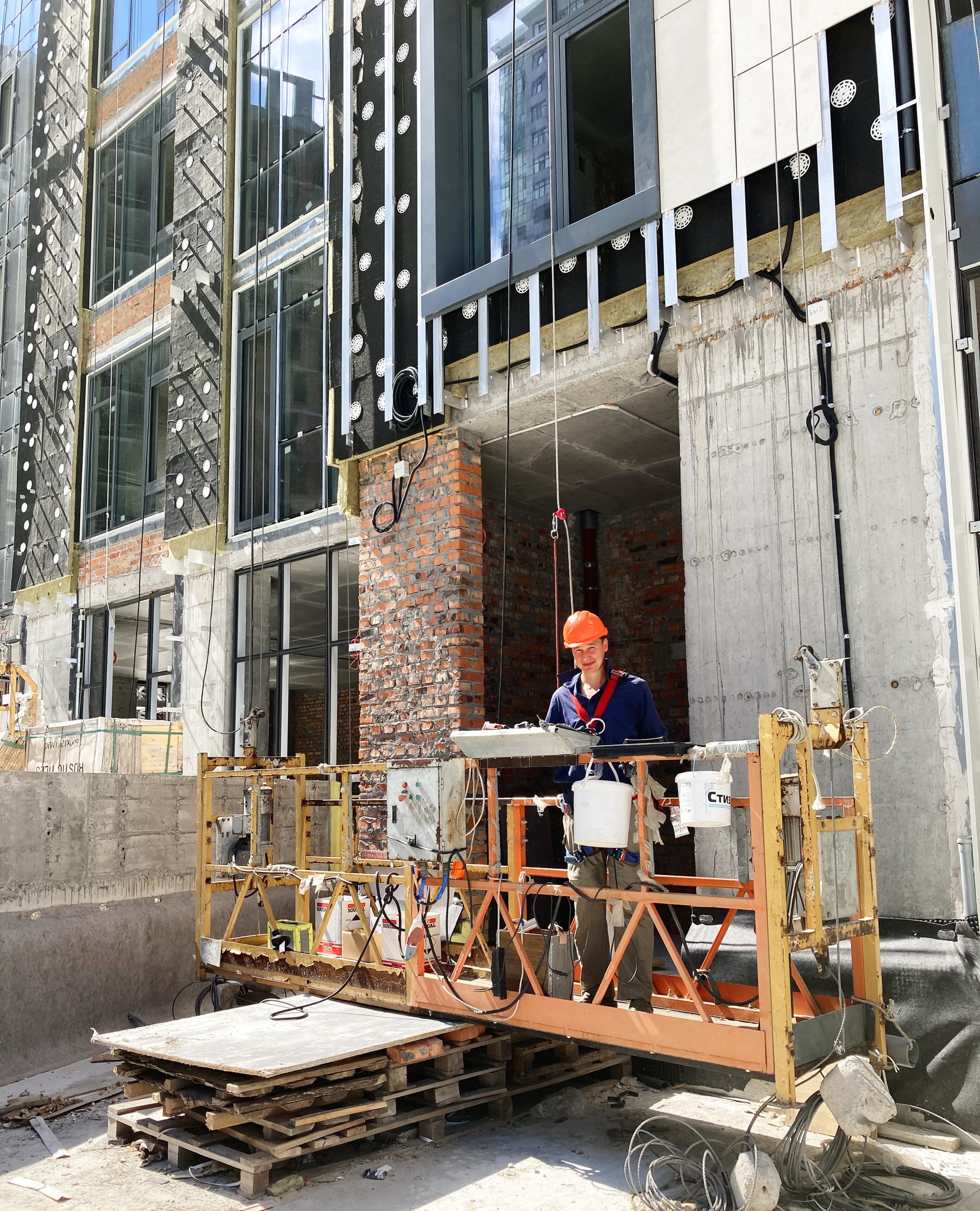 - Commencement of the installation of consoles, suspended platforms, hoists, catchers, and the control panel for construction cradles to perform facade works.