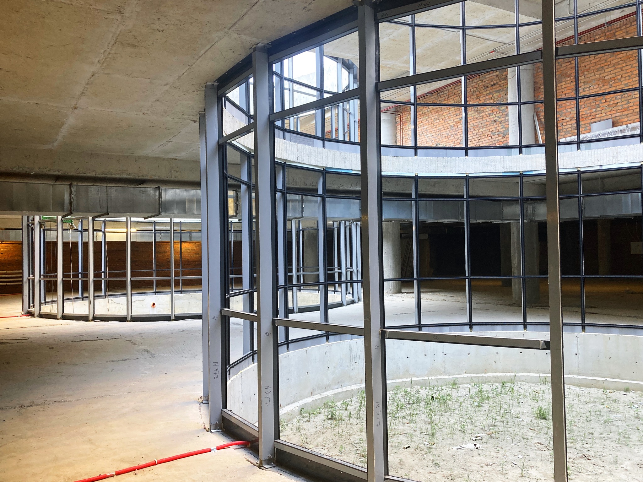 - Preparatory work is ongoing for further facade construction and the installation of aluminum window glazing structures.