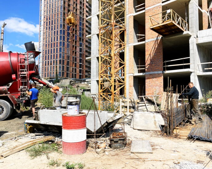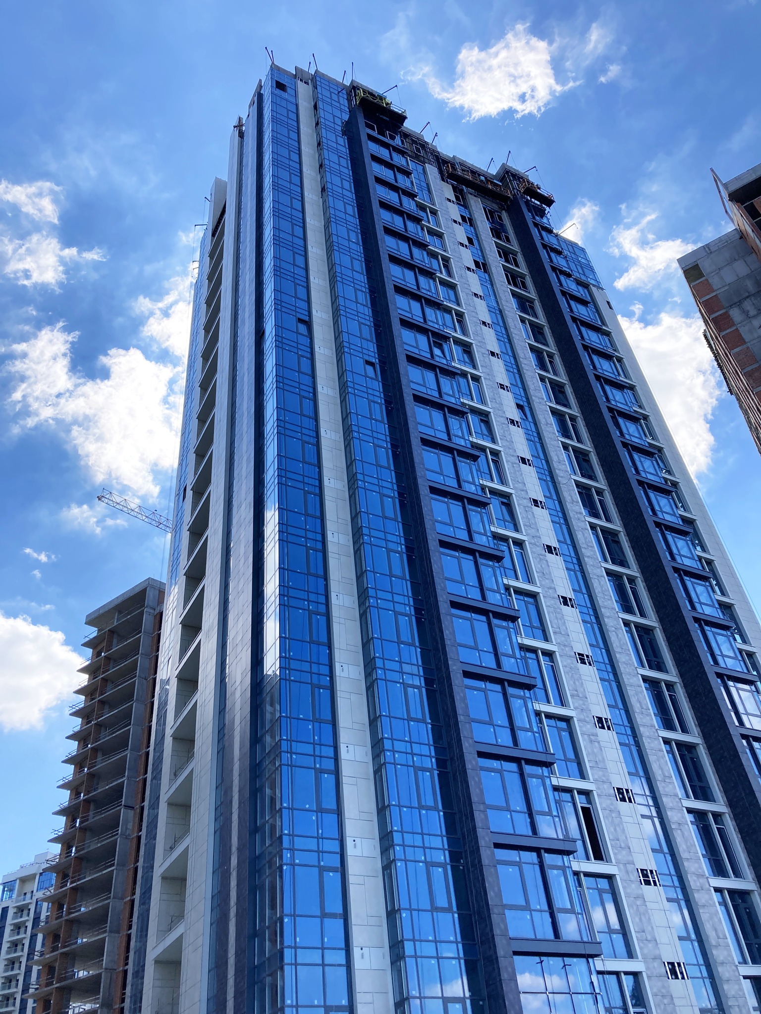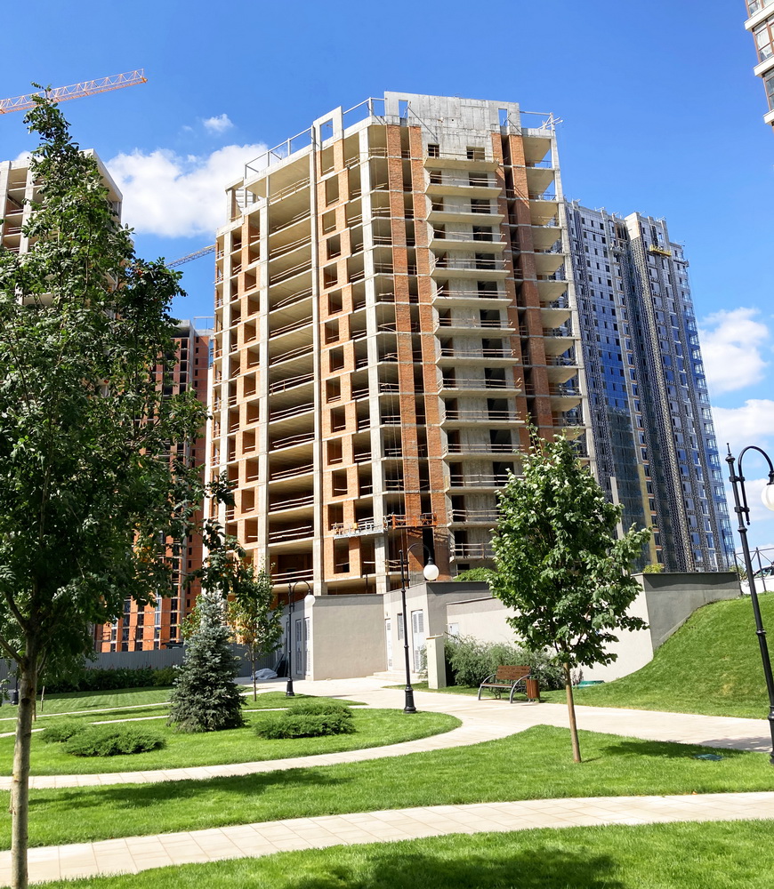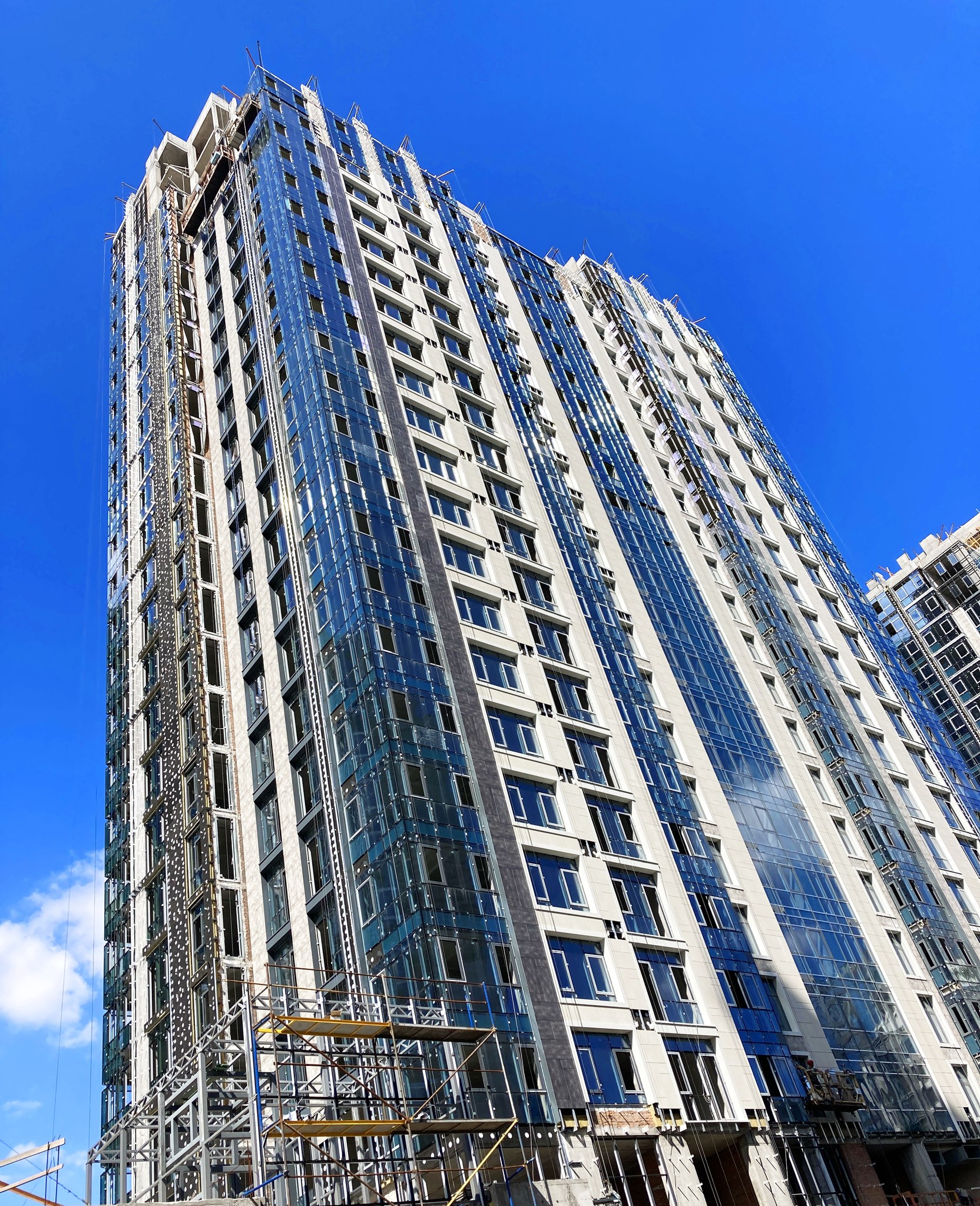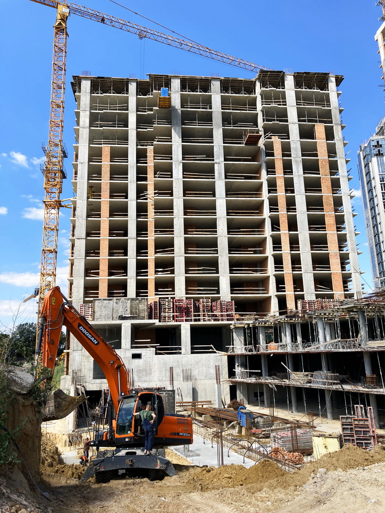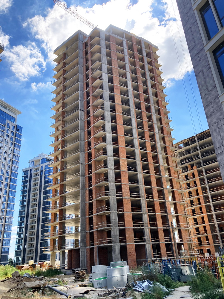 - Construction of the monolithic frame of the building is ongoing, with the pouring of the floor slab between the 13th and 14th floors.