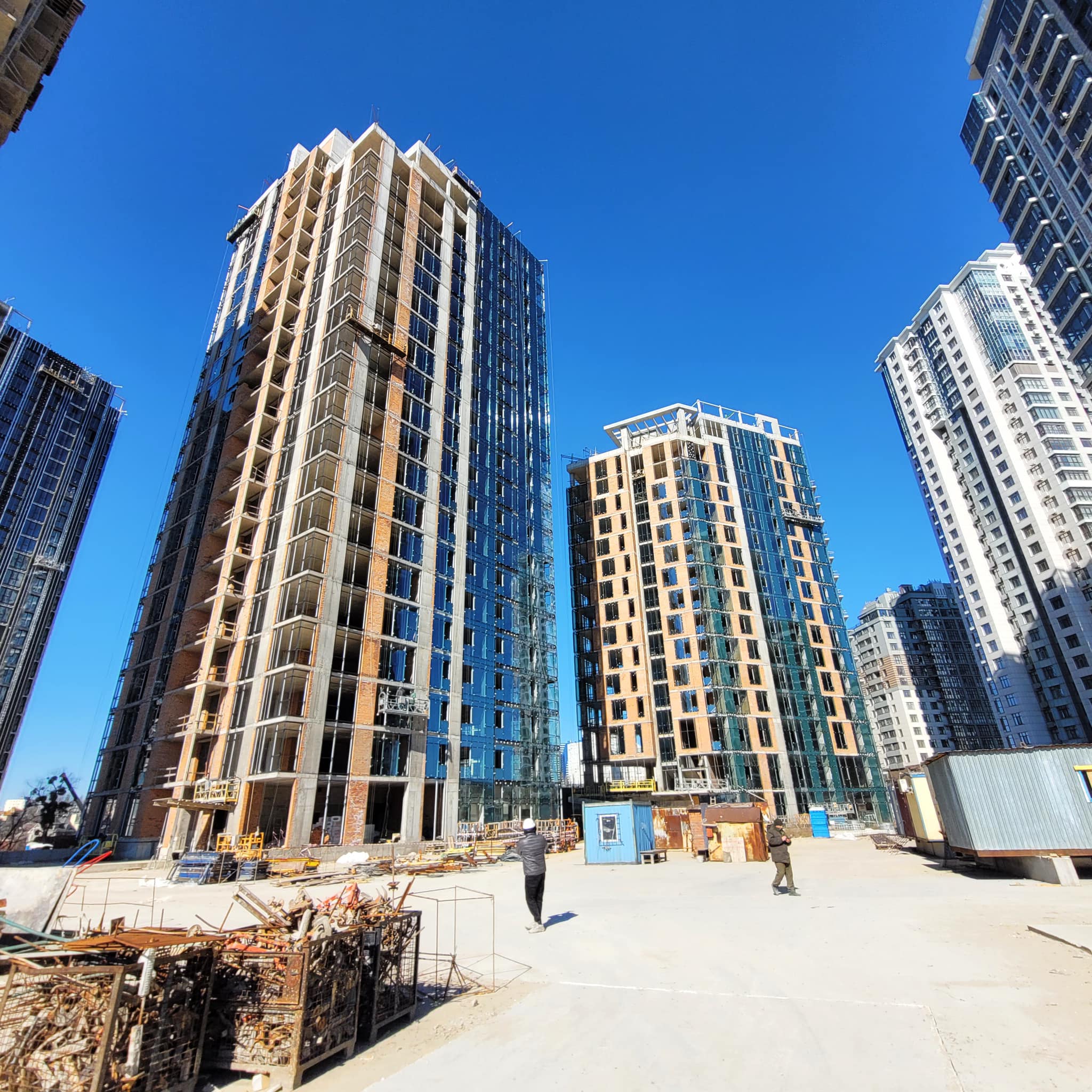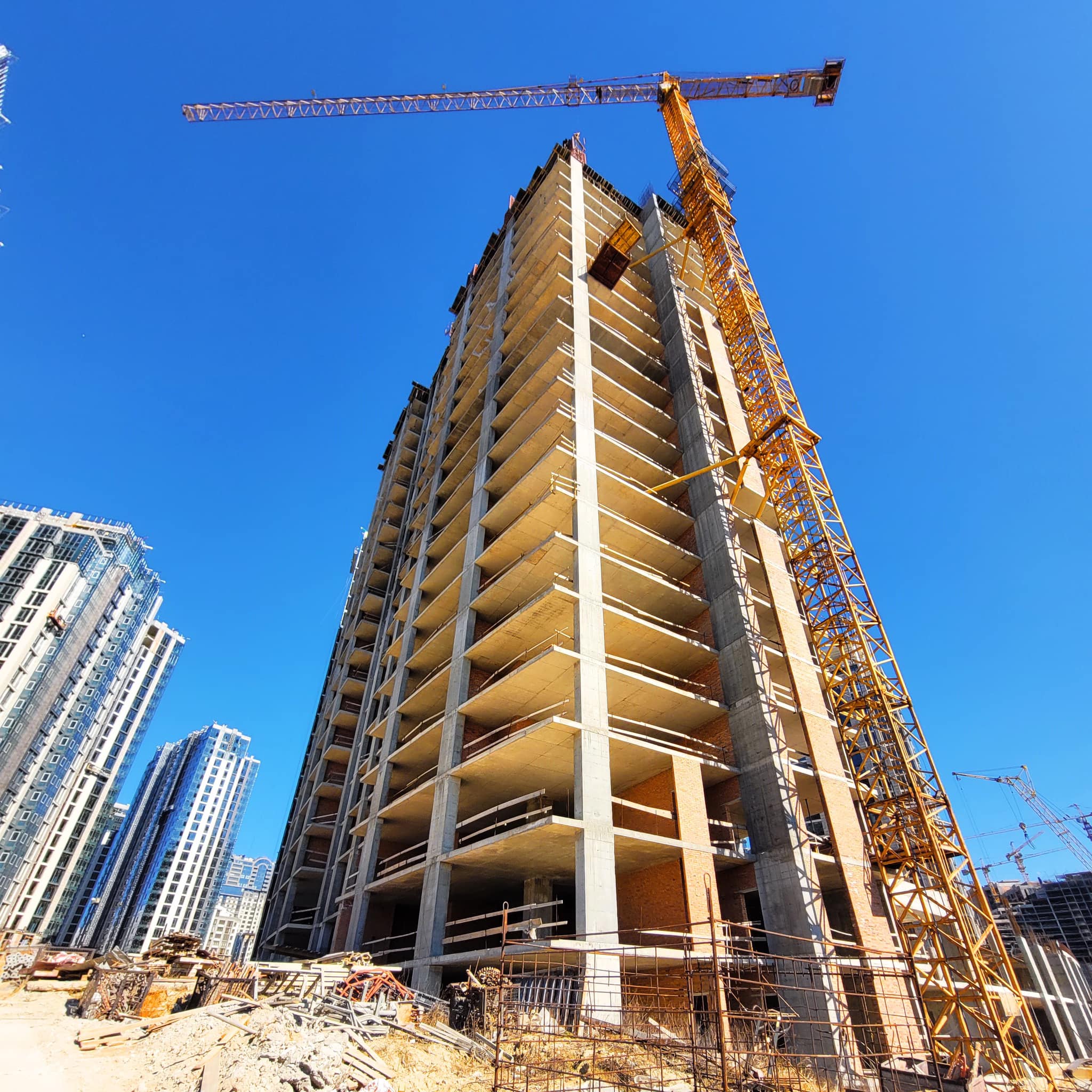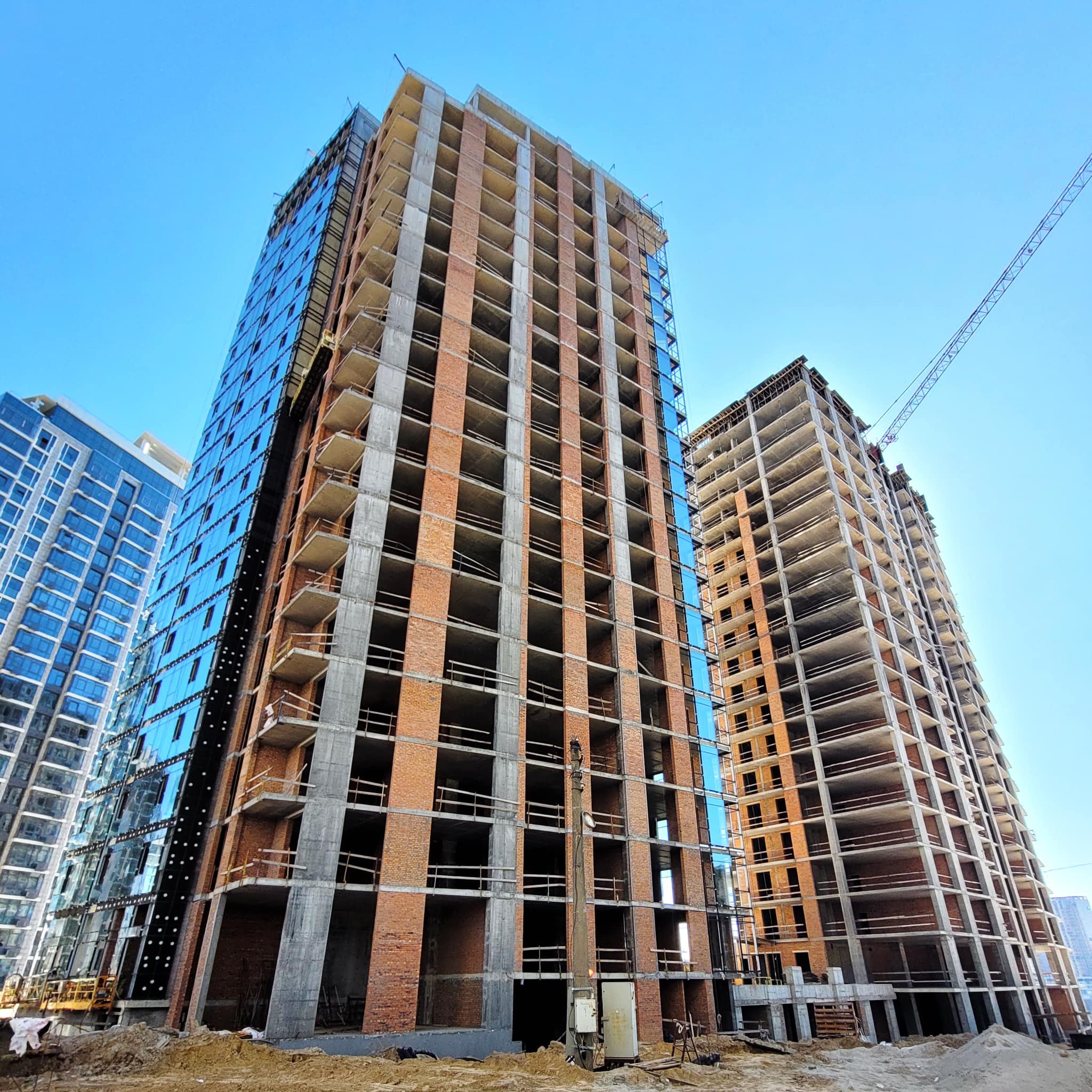 - Formwork and concrete pouring of the floor slab, vertical structures, and elements of the 21st floor of the monolithic frame are ongoing.