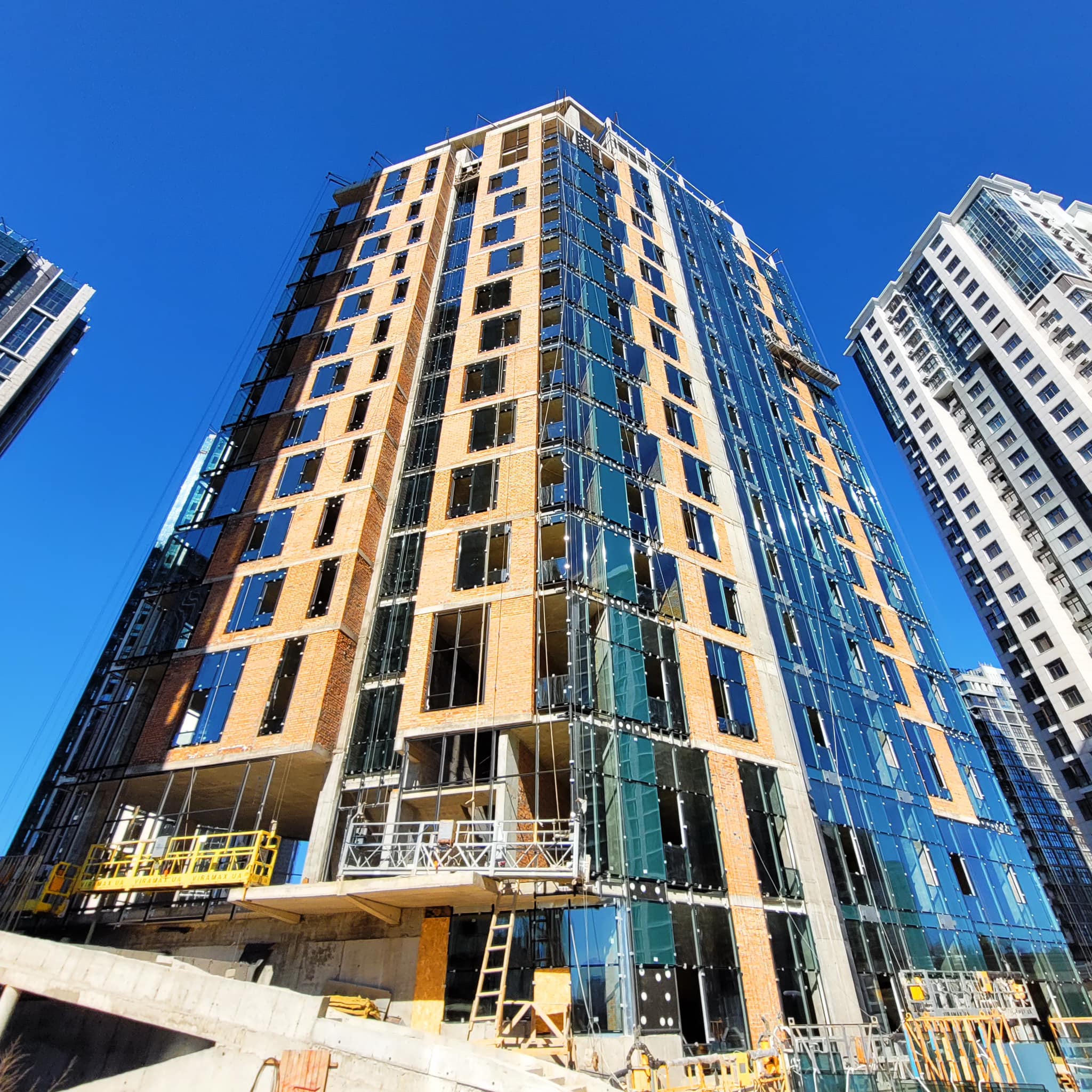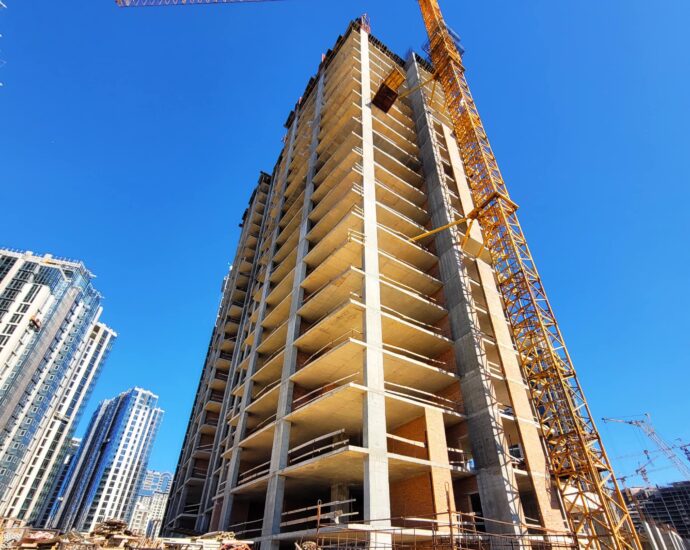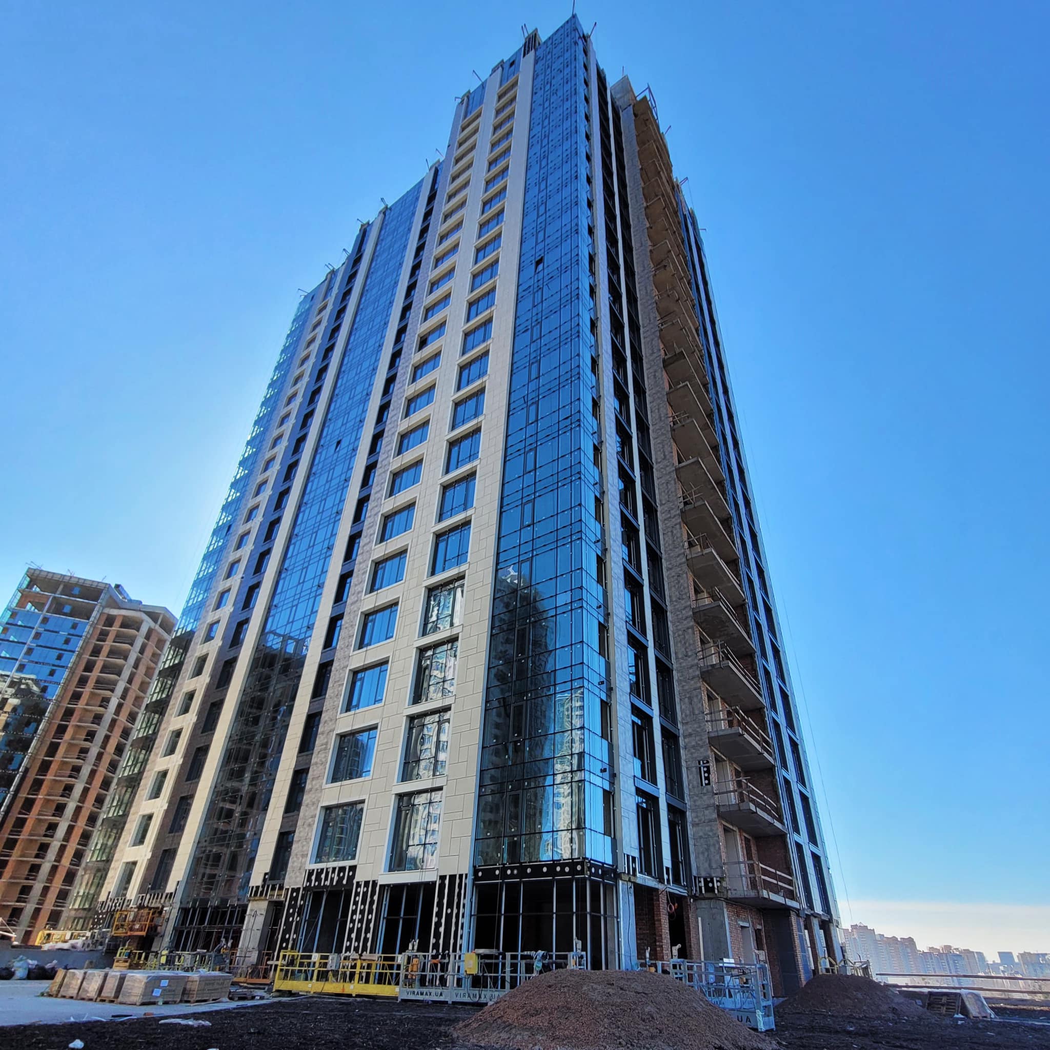 - Formwork and concrete pouring of the floor slab, vertical structures, and elements of the 21st floor of the monolithic frame are ongoing.