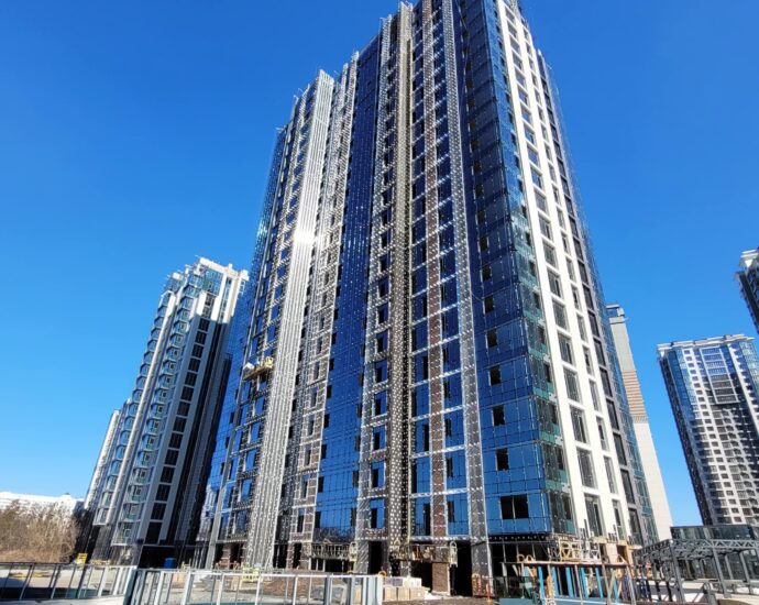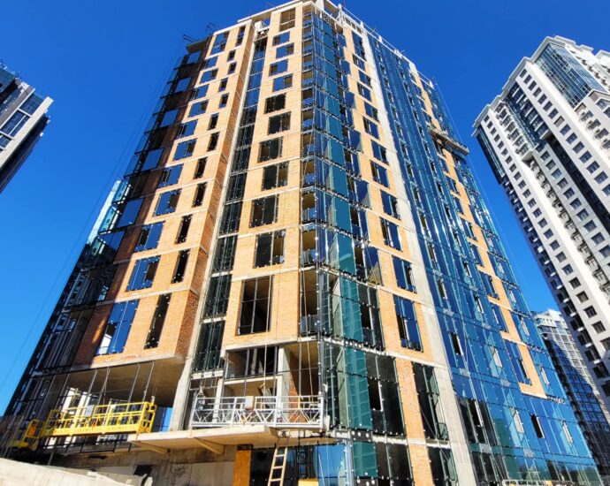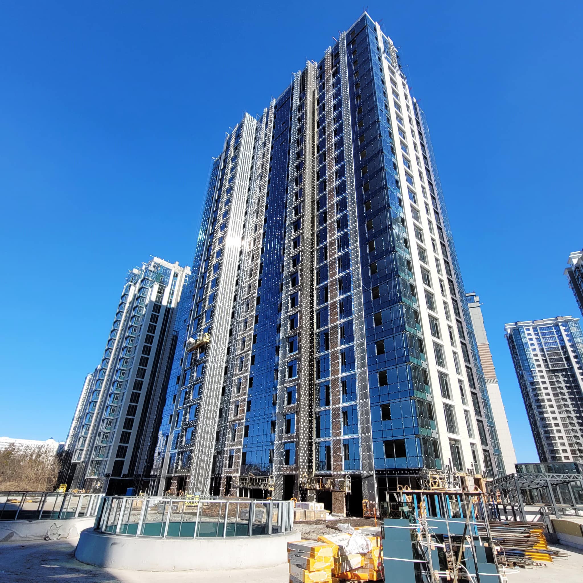 - Installation of aluminum window glazing structures and transparent facade structures from floors 1 to 16 is ongoing.