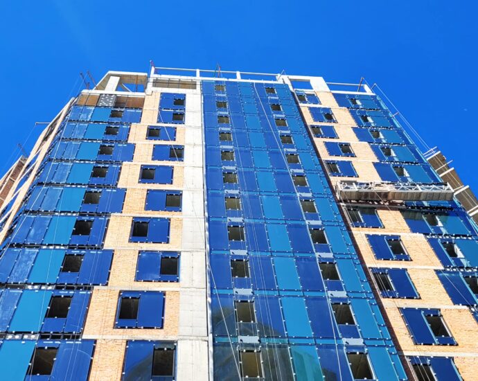 - Installation of aluminum window glazing and facade structure is in the final stages.