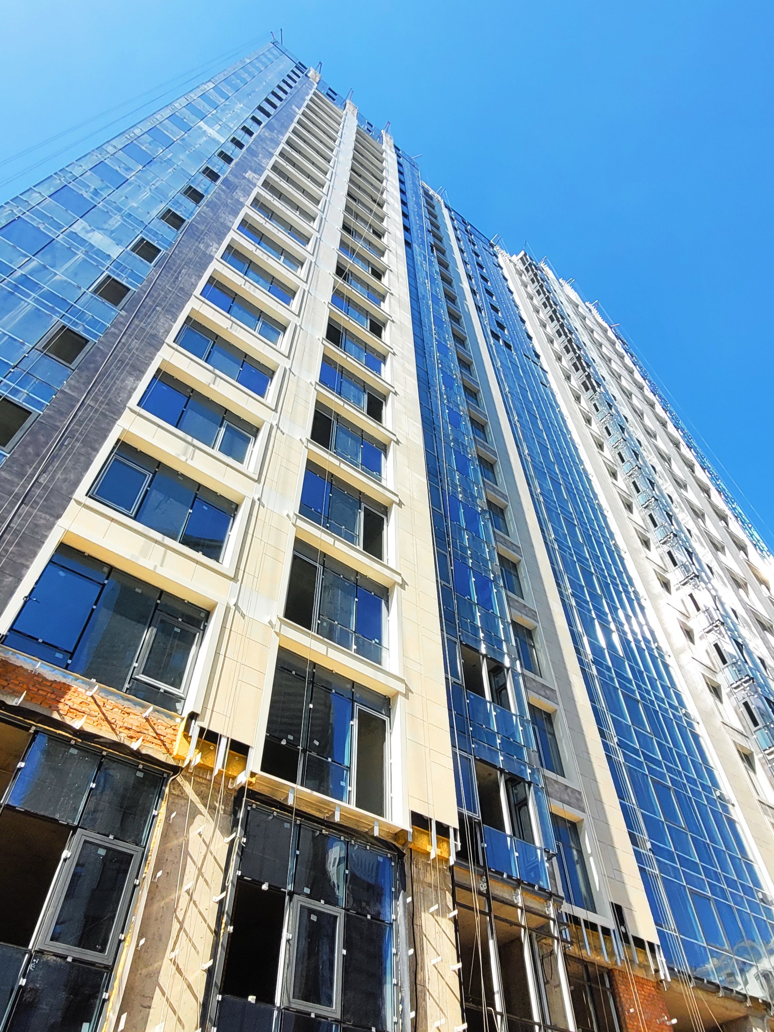 - Work on facade arrangement and installation of aluminum glazing structures is in progress.