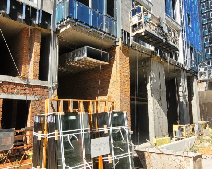 - Preparatory works are underway for further facade arrangement and installation of aluminum glazing structures.