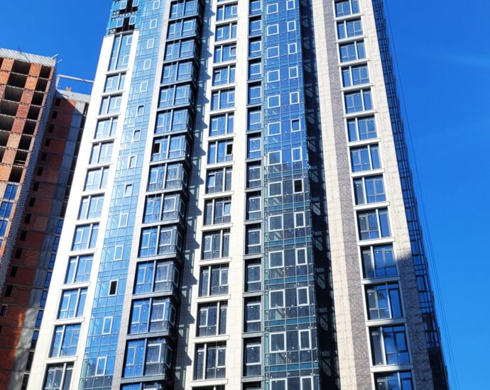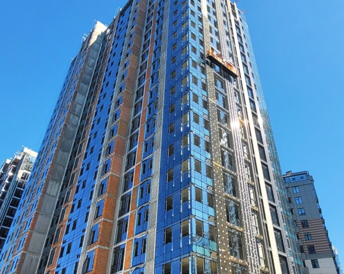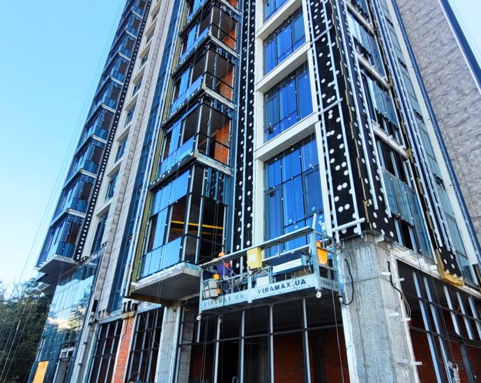- Insulation of the building with non-combustible mineral wool and installation of profiles for facade attachment – 93% completion.