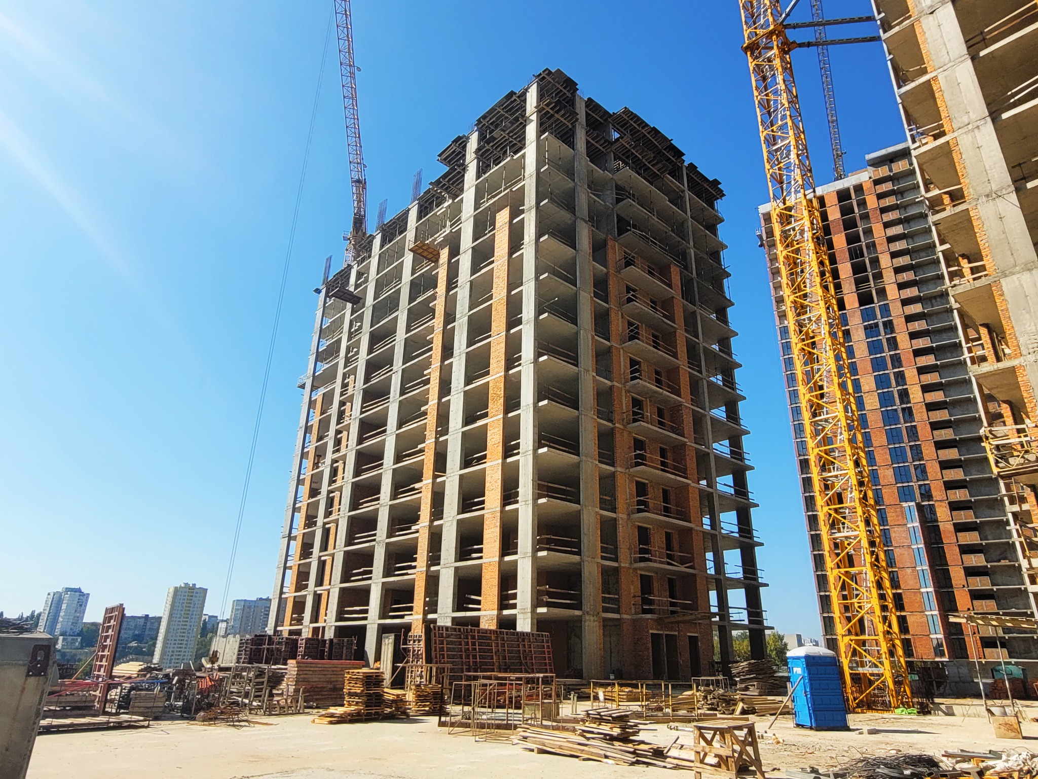 - Installation of the monolithic frame is in progress at the level of the 15th floor. Pouring the floor slab between the 15th and 16th floors.