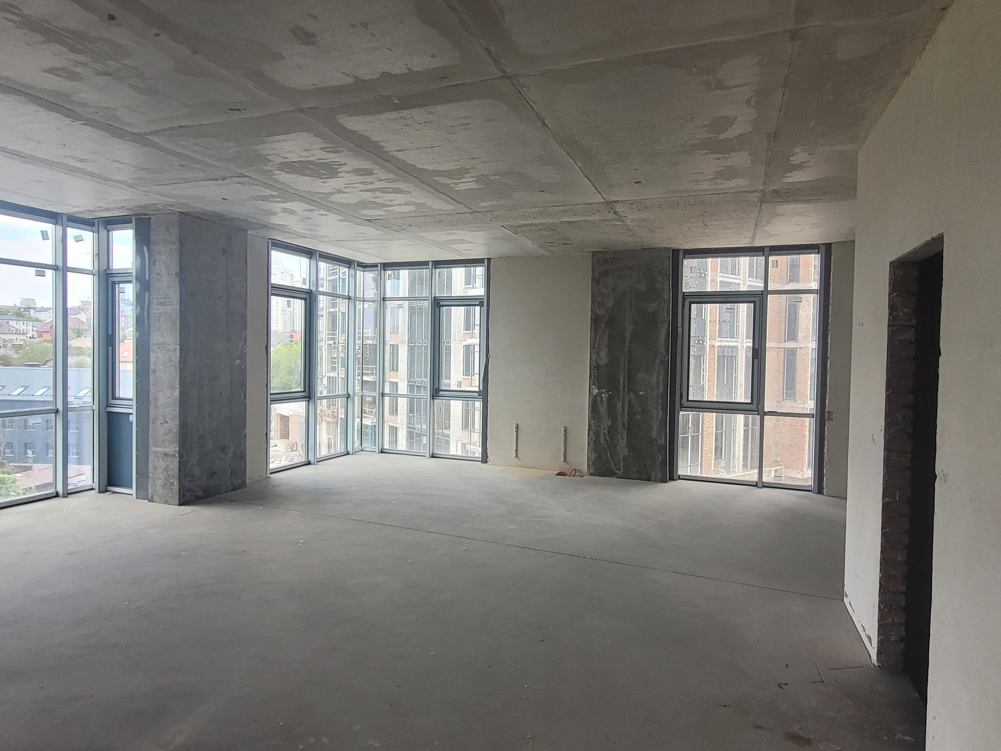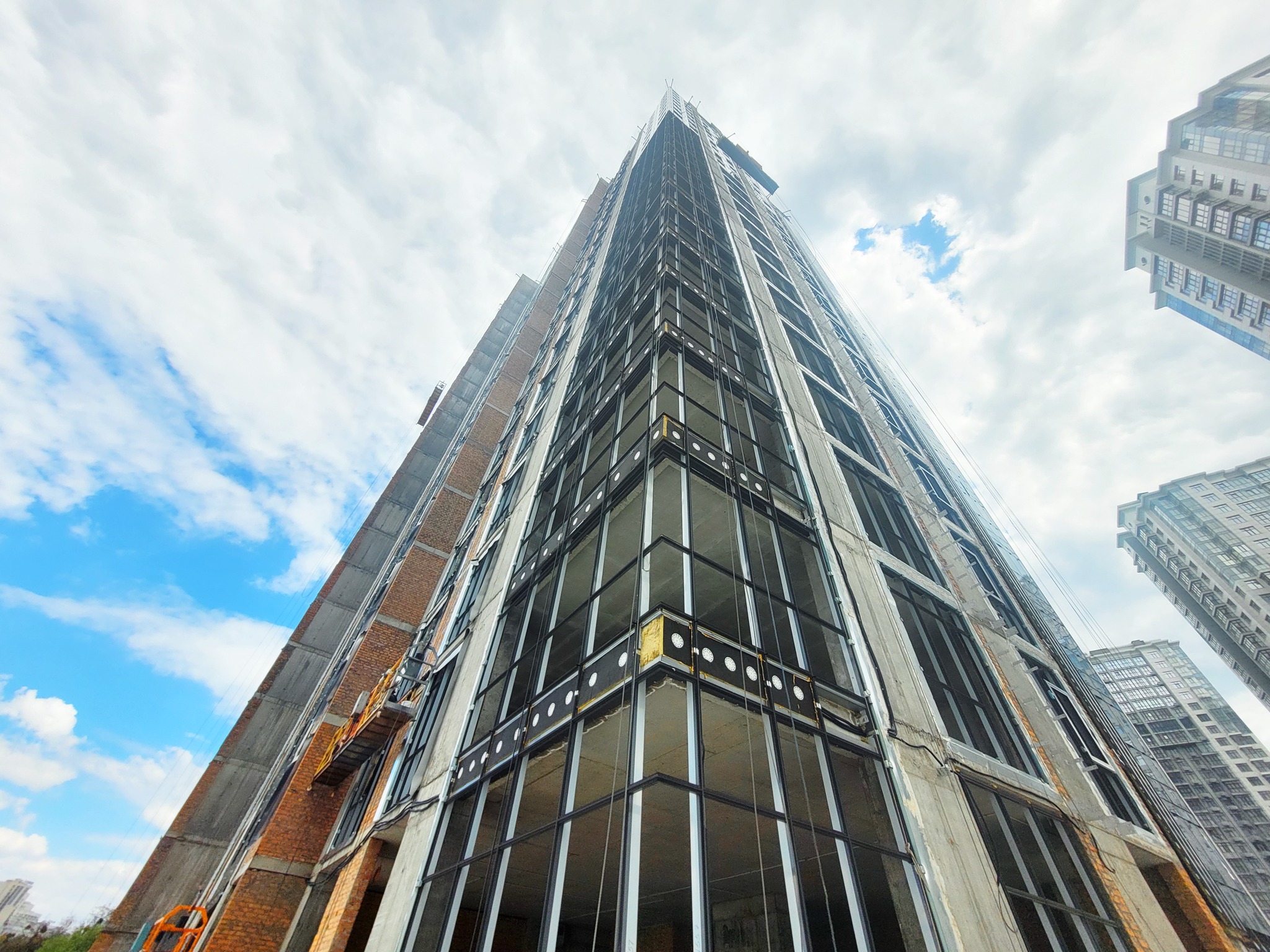 - Ongoing work on the installation of aluminum window glazing and facade structure.