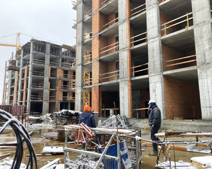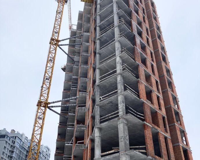✅ Monolithic works for the construction of the building’s frame are ongoing. The construction of the 6th floor is completed, the slab between the 6th and 7th floors is poured, and reinforcement and concreting of the vertical structures of the 7th floor and the installation of formwork for the slab between the 7th and 8th floors are in progress.