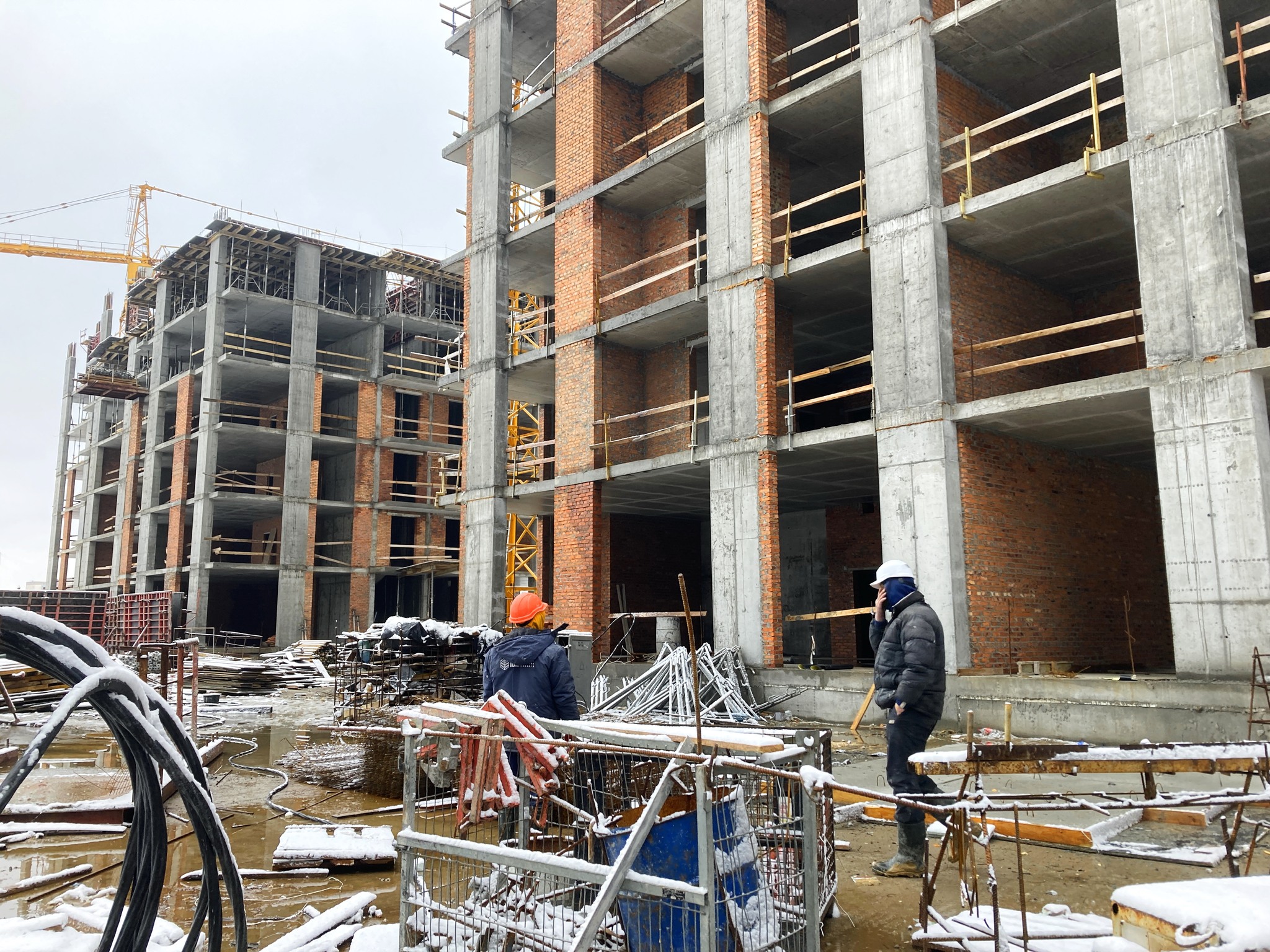 ✅ Bricklaying works are being carried out on the top floors.