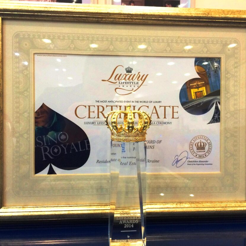 Отримання міжнародної премії LuxuryLifestyleAwards 2014 – підтвердження того, що компанія, яка реалізує проект, йде правильним шляхом і пропонує ринку України дійсно якісний продукт, який є найкращою пропозицією для покупця нерухомості в сегменті преміям класу в Україні. Особливо значимою ця нагорода є й тому, що «Бульвар Фонтанів» вже ставав фіналістом цієї престижної премії в 2011році, і знову гідно був оцінений експертами ринку розкоші, отримавши заслужену перемогу в 2014 році.