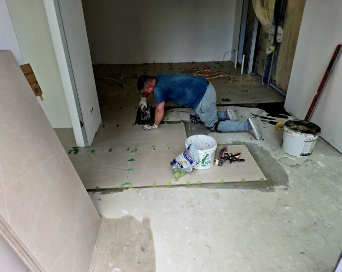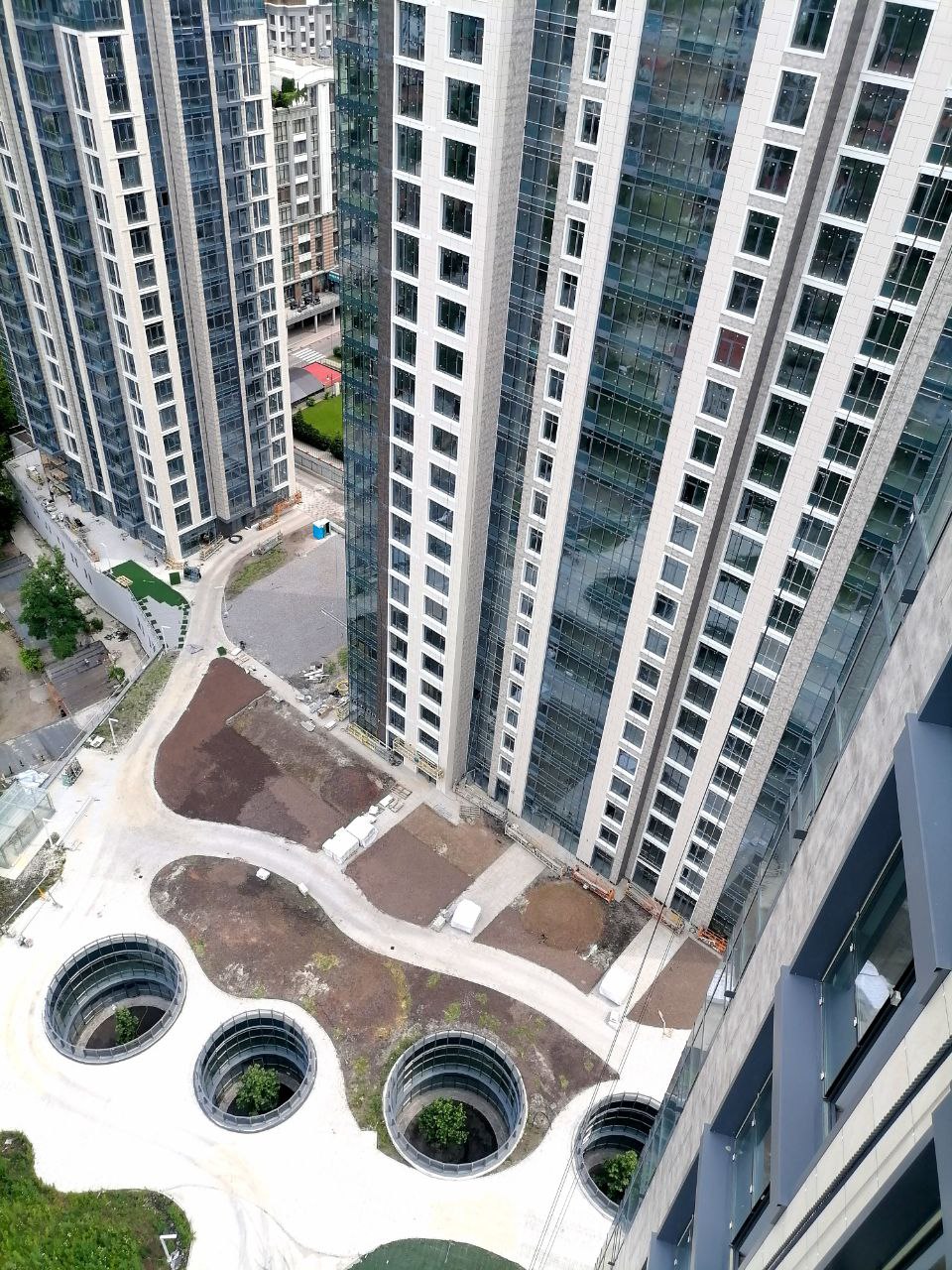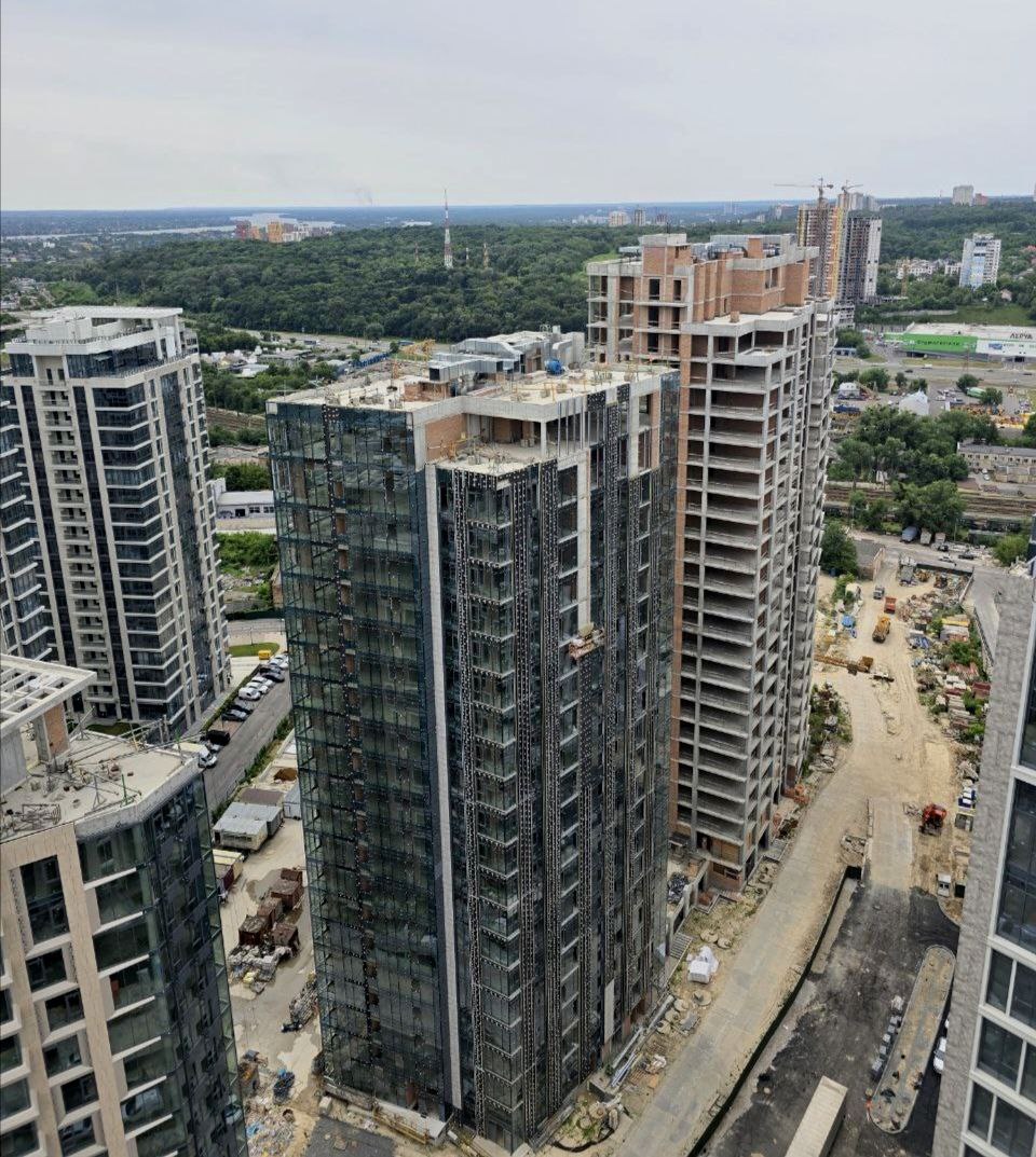 - Штукатурні роботи завершено на 4–7 поверхах, стяжка підлоги виконана на 4 поверсі та розпочата на 5-му.