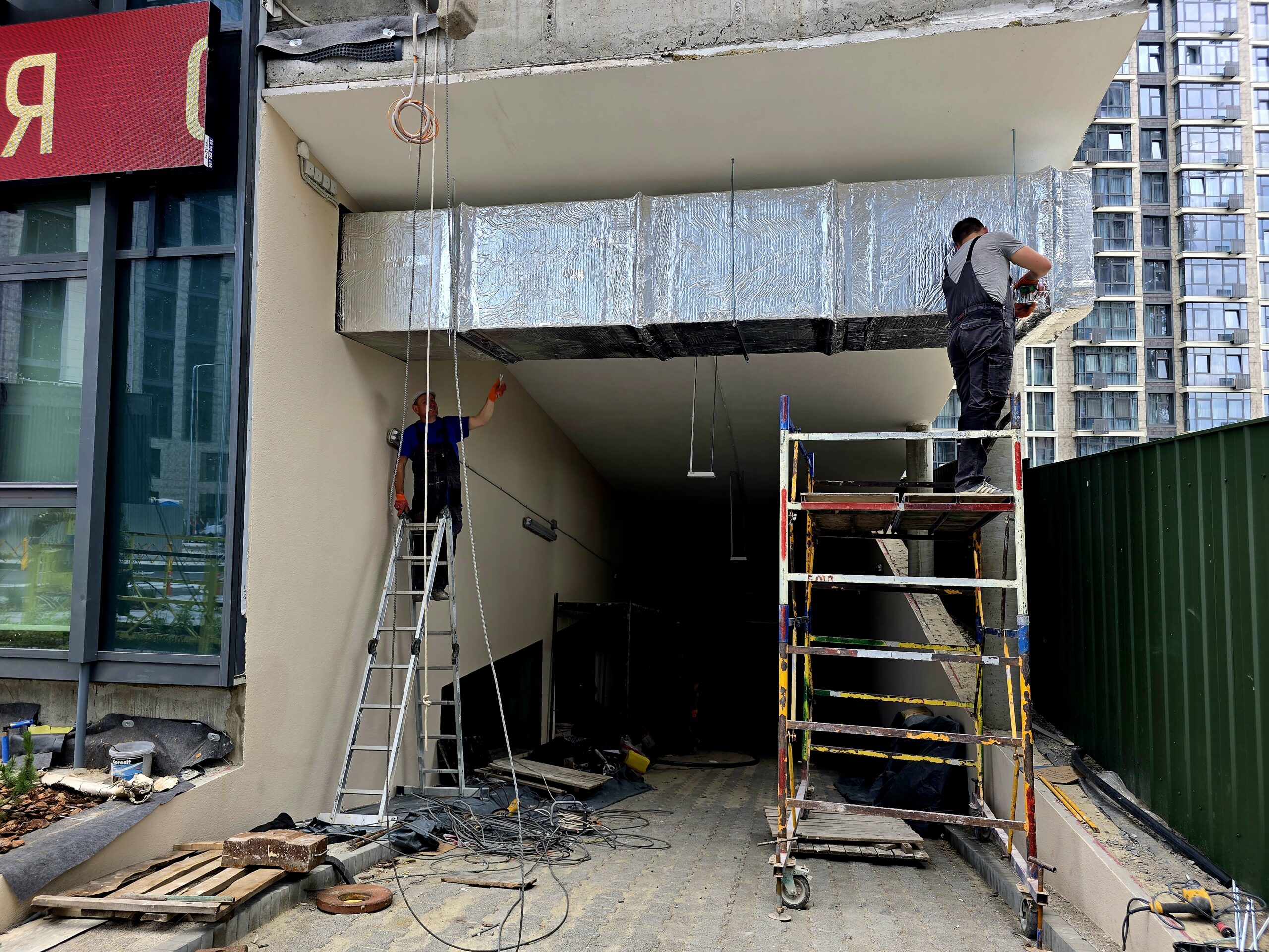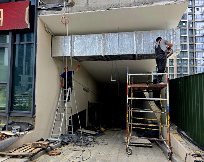 - Завершено 70% утеплення фасаду, встановлено 55% вентильованої фасадної системи.