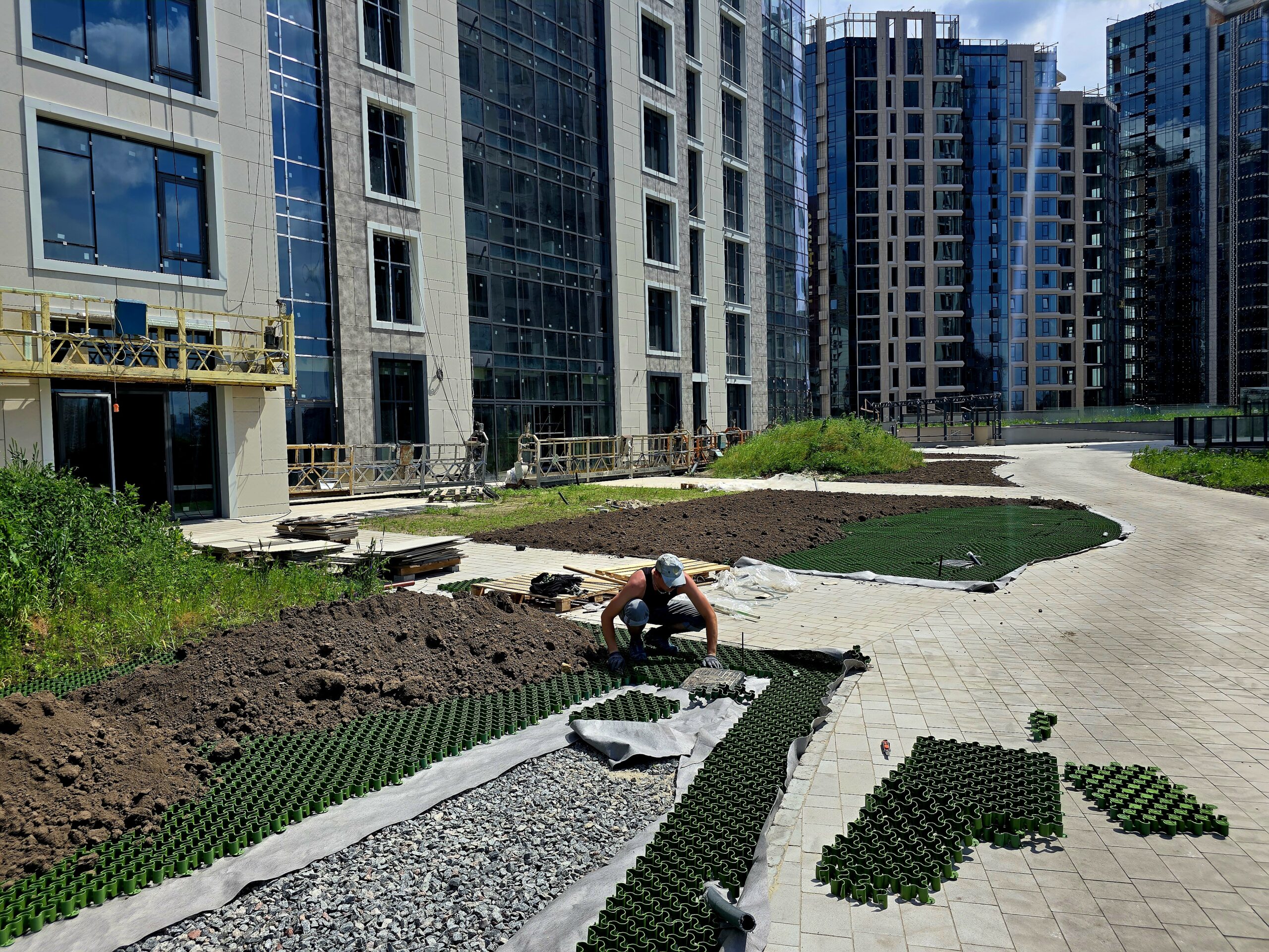 - Благоустрій: облаштовуються проїзди для спеціалізованого транспорту, зокрема пожежного. Також стартував монтаж огорожі з нержавіючого металу.