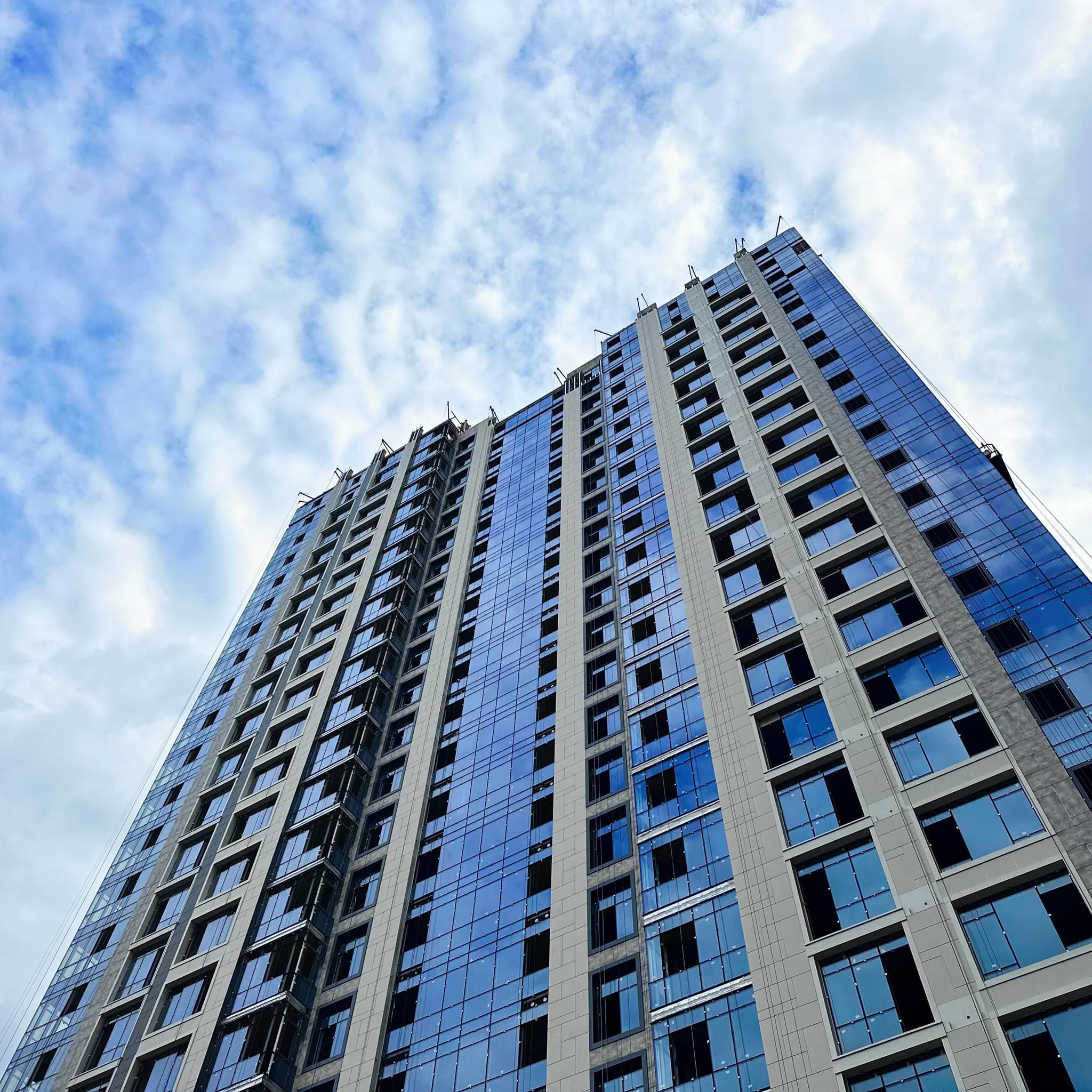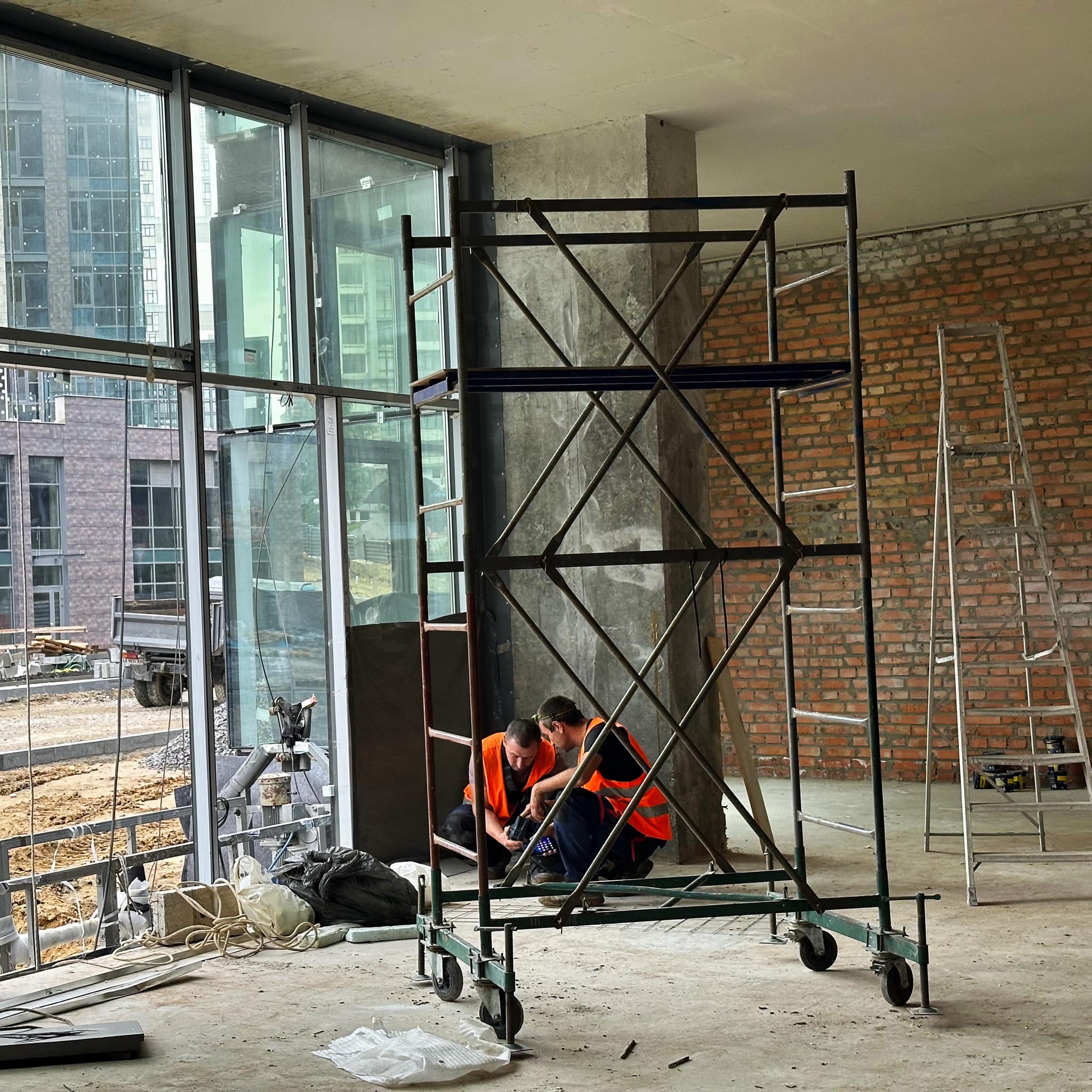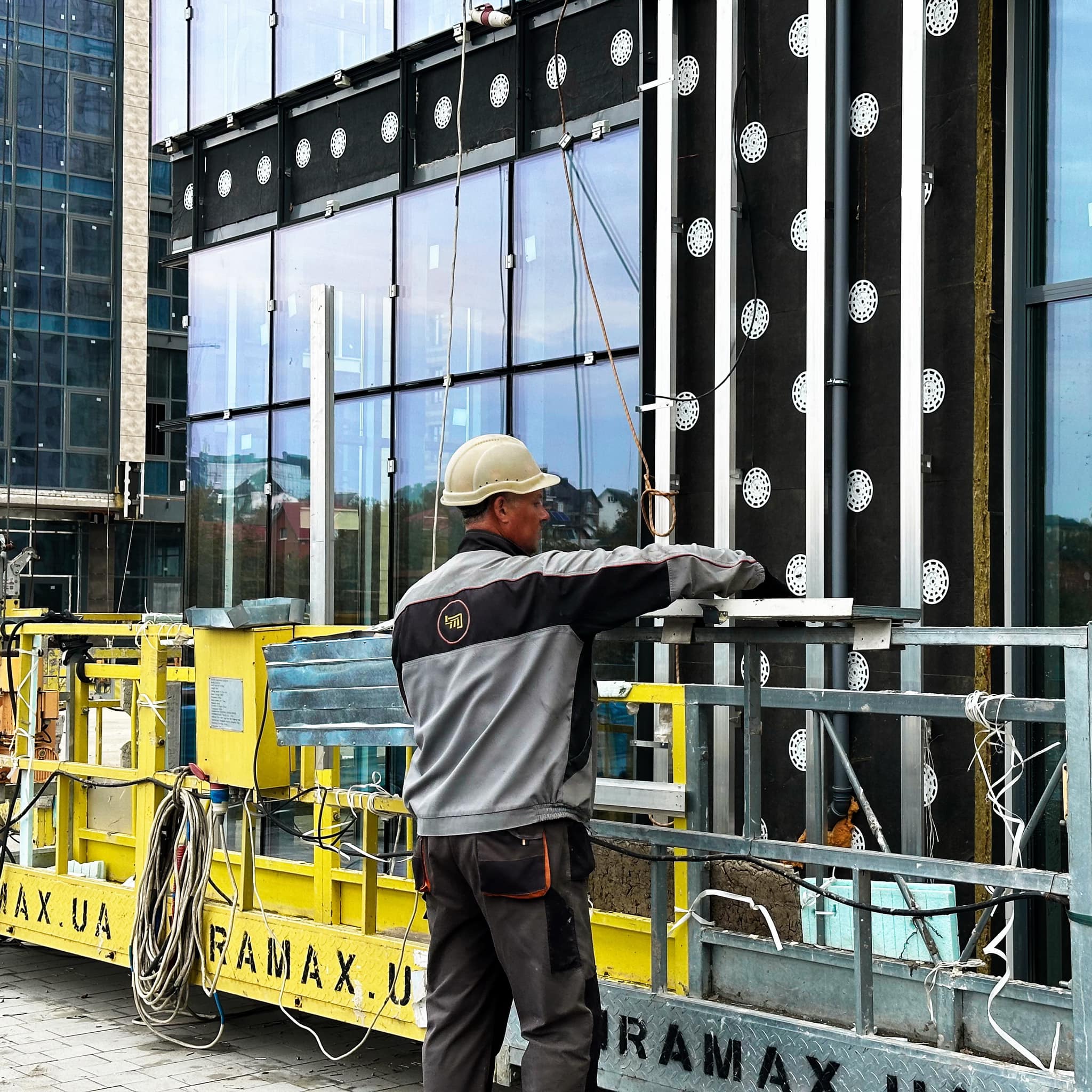 – Виконано 67% робіт з влаштування каркасів алюмінієвих вітражів та встановлення світлопрозорих огороджувальних конструкцій фасаду з 2 по 21 поверхи.