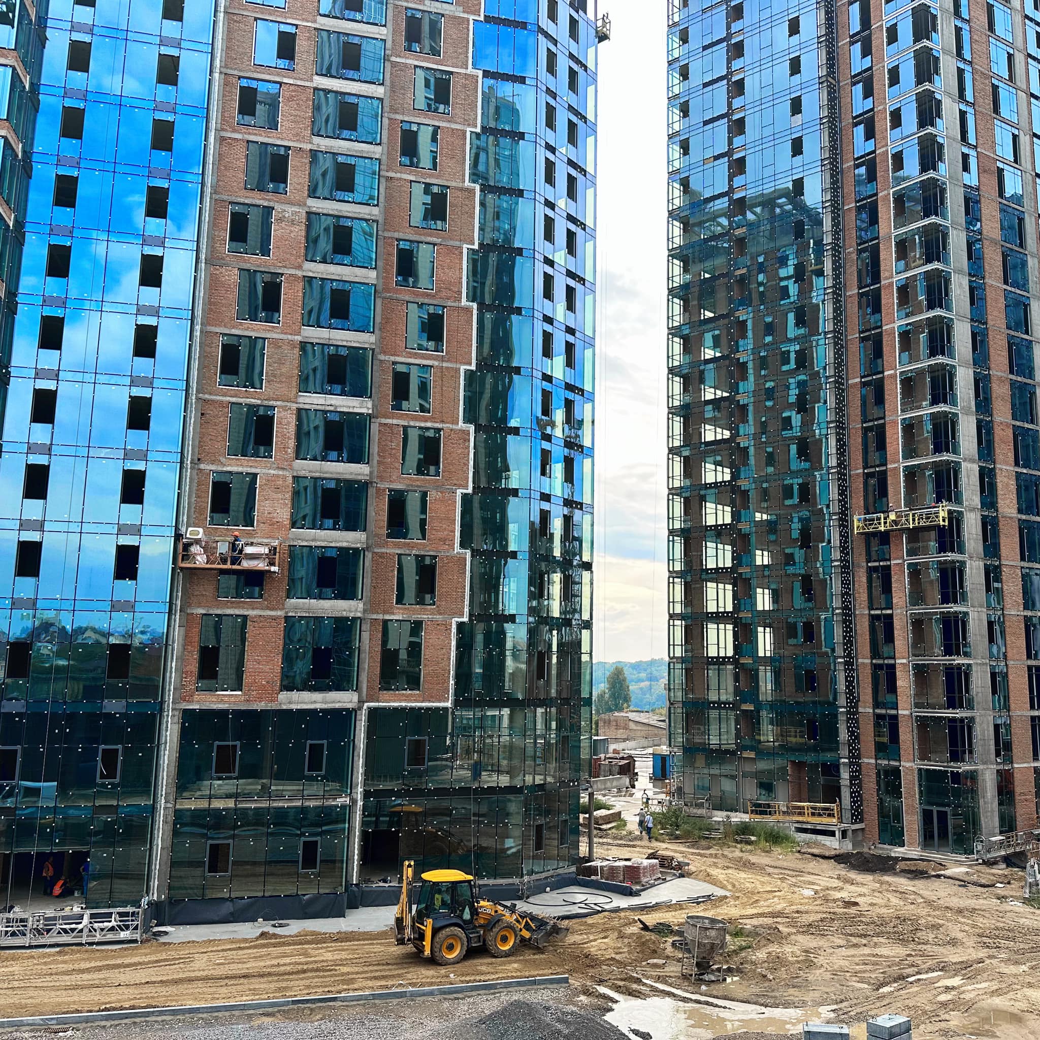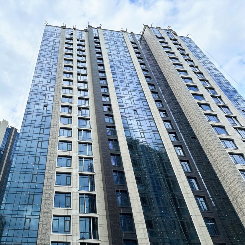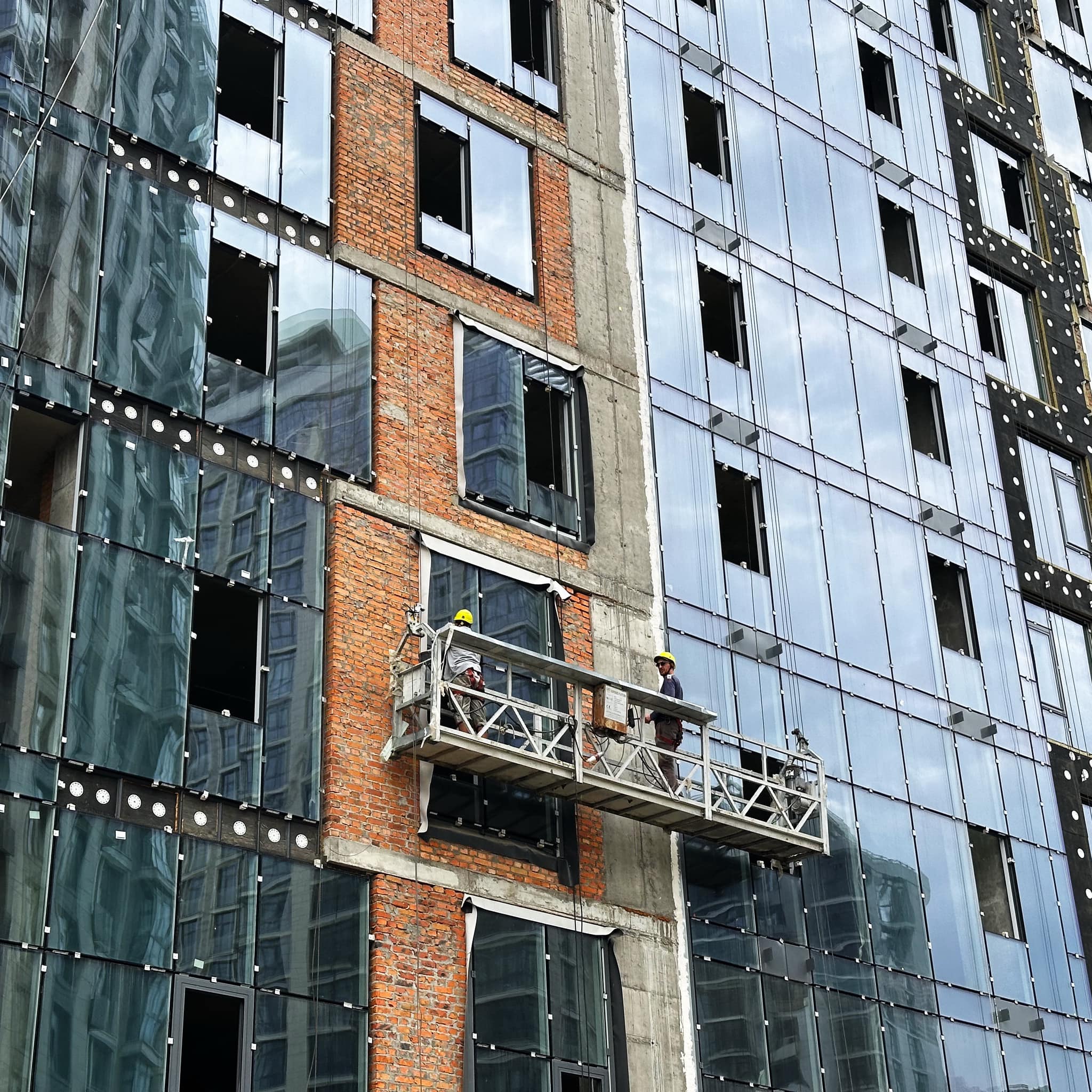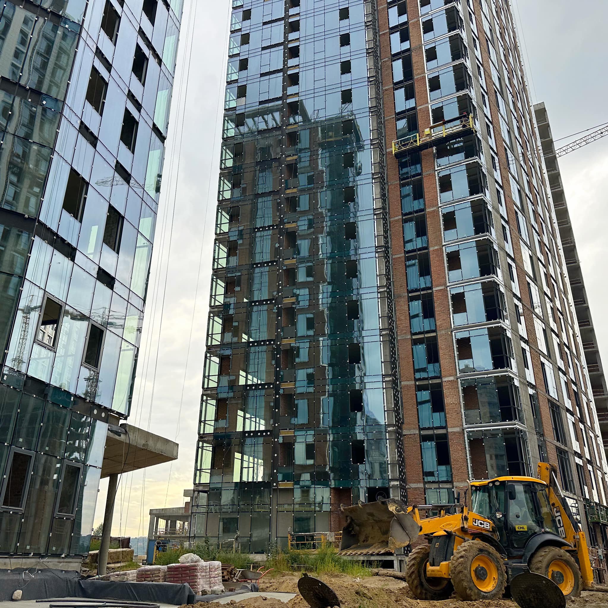 – Виконано 70% робіт з влаштування каркасів алюмінієвих вітражів та встановлення світлопрозорих огороджувальних конструкцій фасаду з 1 по 16 поверхи.