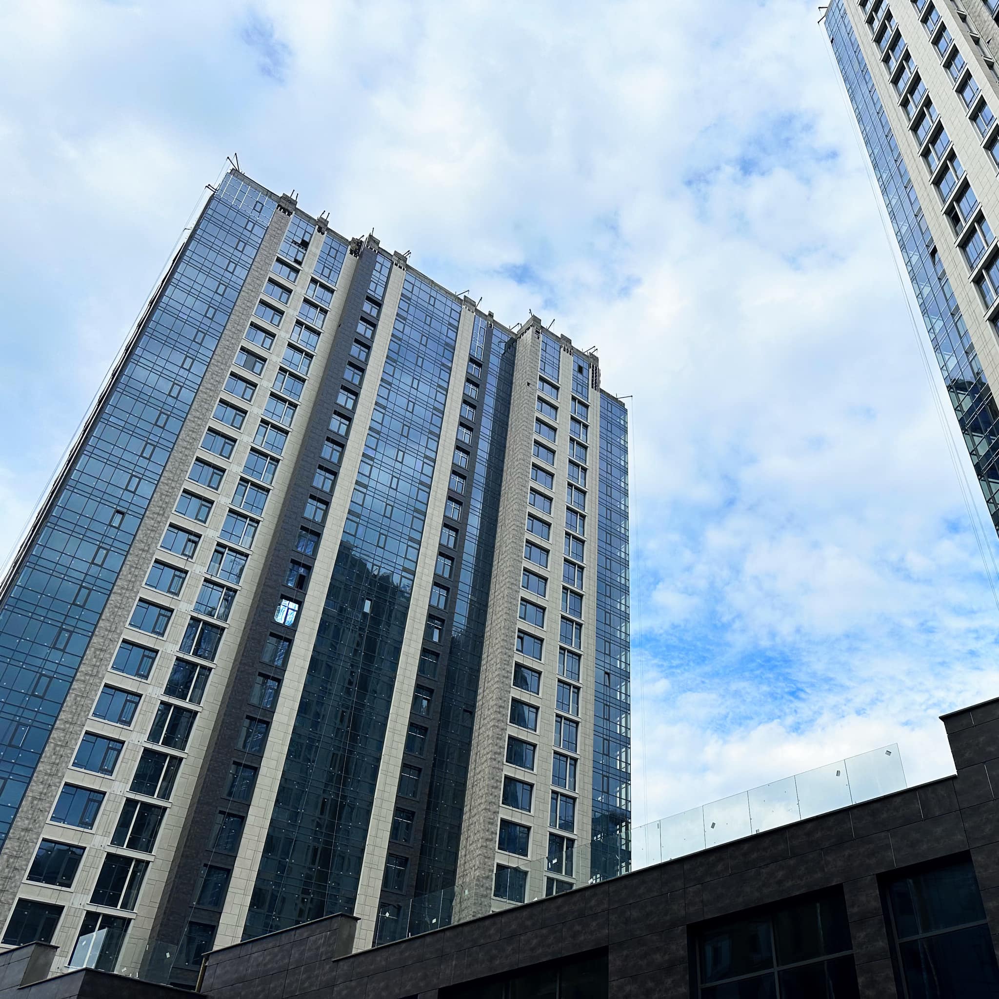 – На завершальній стадії встановлення скляного огороджувального парапету на оглядовому майданчику над комерційною будівлею між будинками 2-3.