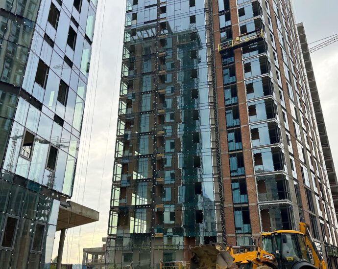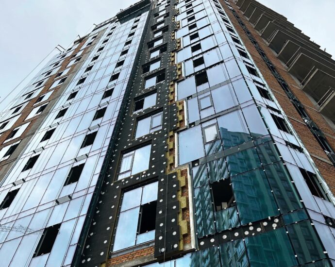 – У всіх будинках 7 черги завершується встановлення віконних елементів на парапетній частині та алюмінієвих віконних вітражів і конструкцій фасаду.