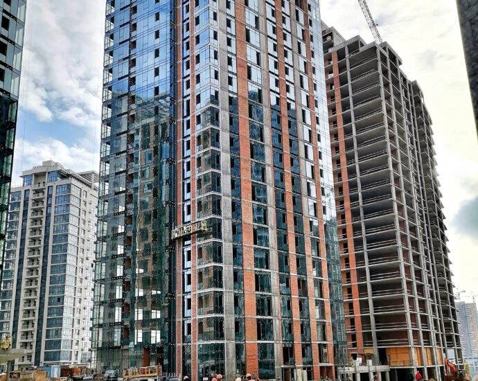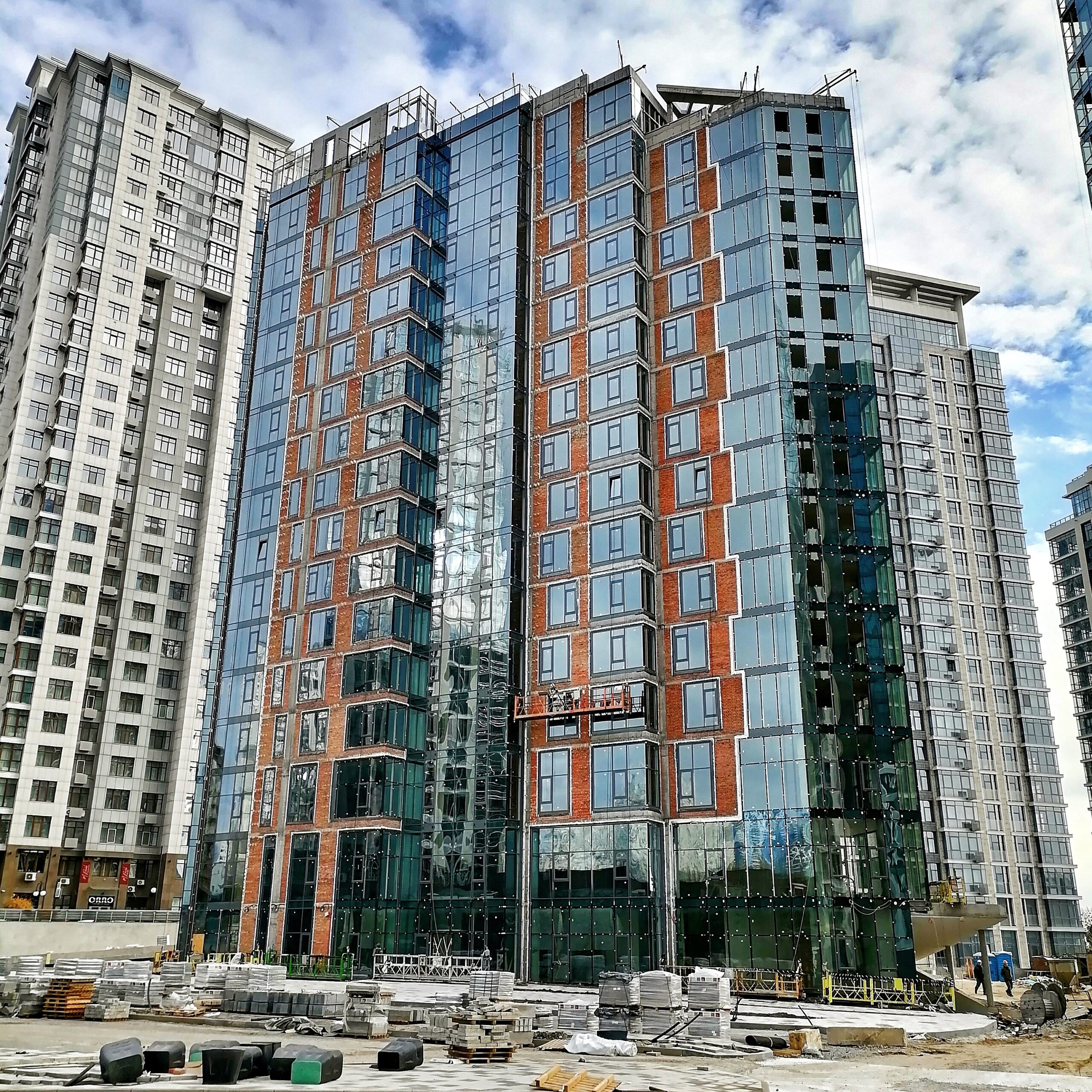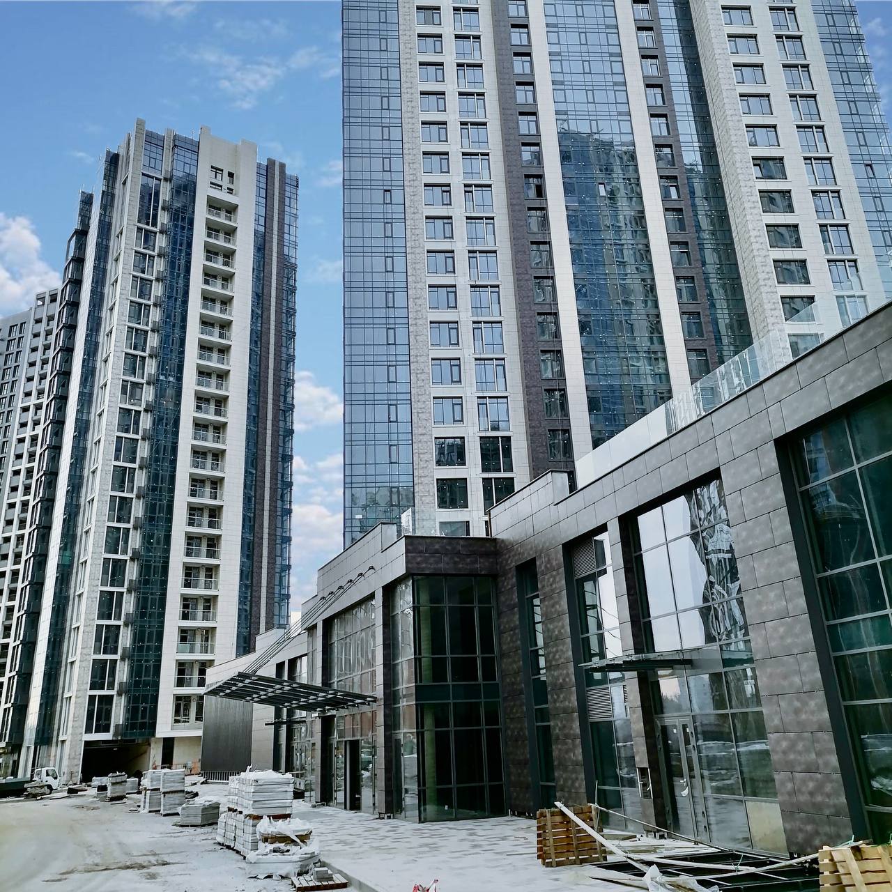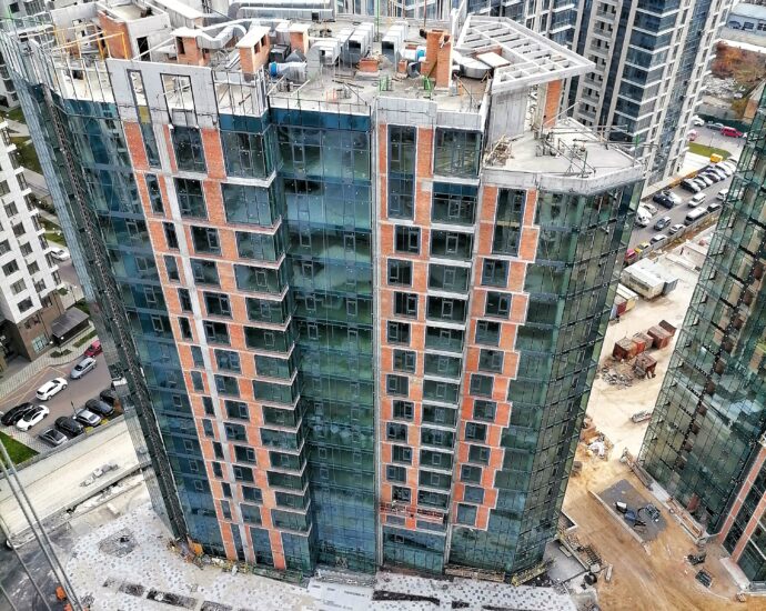 – Завершується встановлення скляних елементів на парапетній частині та алюмінієвих віконних вітражів і конструкцій фасаду у всіх будинках 7-ї черги.