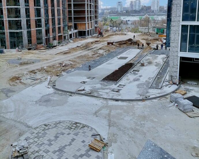 – Триває благоустрій прибудинкових територій: проводиться укладання тротуарної плитки, монтаж систем автополиву та вуличного освітлення.