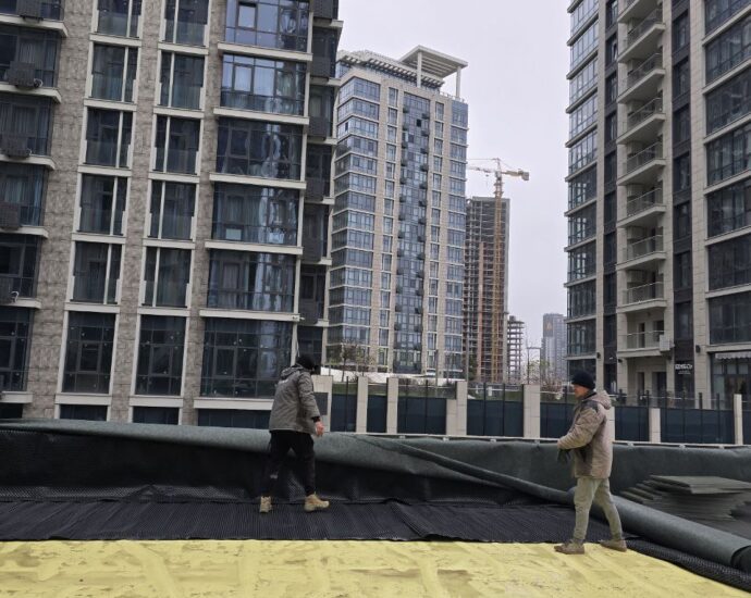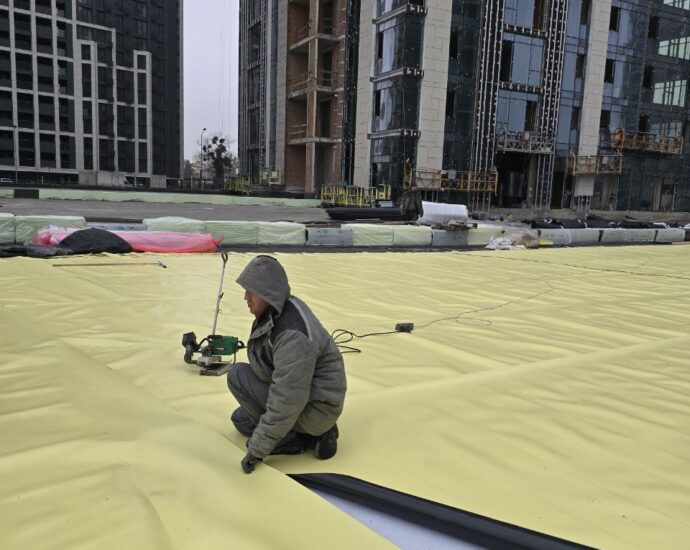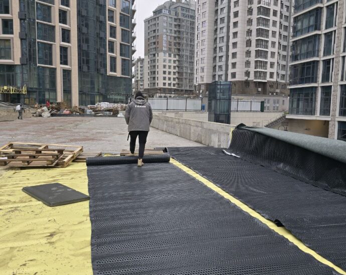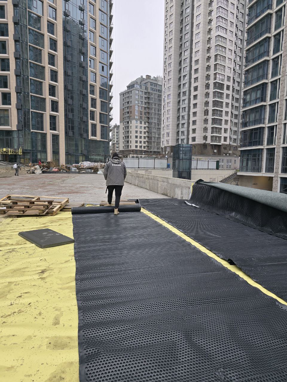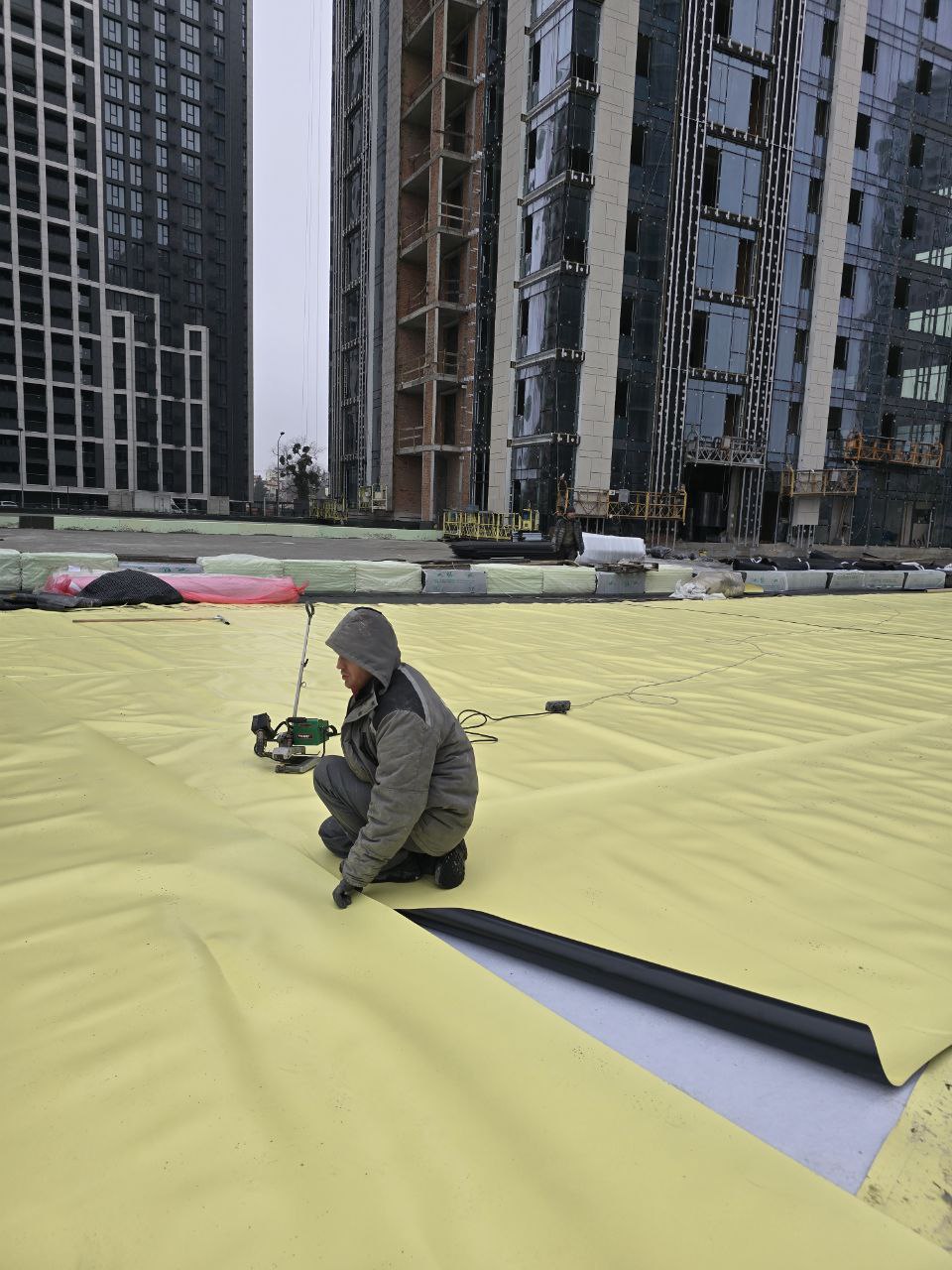 - Продовжуються роботи з улаштування покрівлі паркінгу.