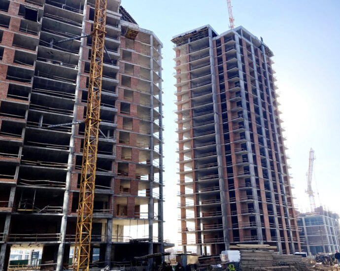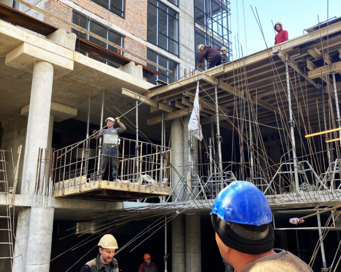 ✅ Тривають монолітні роботи з будівництва каркасу будинку. Залили плити перекриття між 5 та 6 поверхами. Триває облаштування вертикальних колон 7 поверху.
