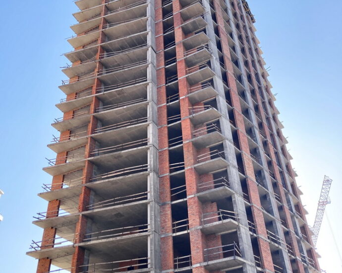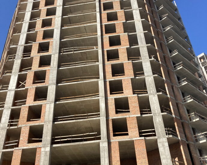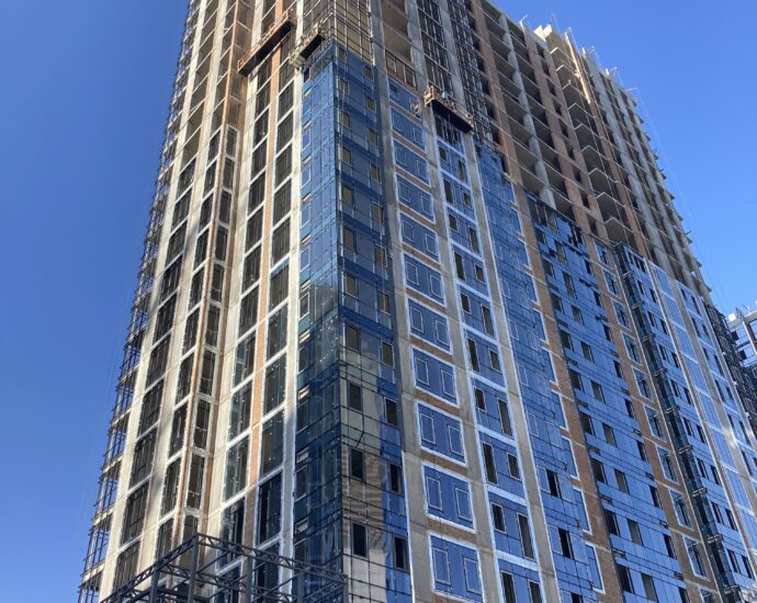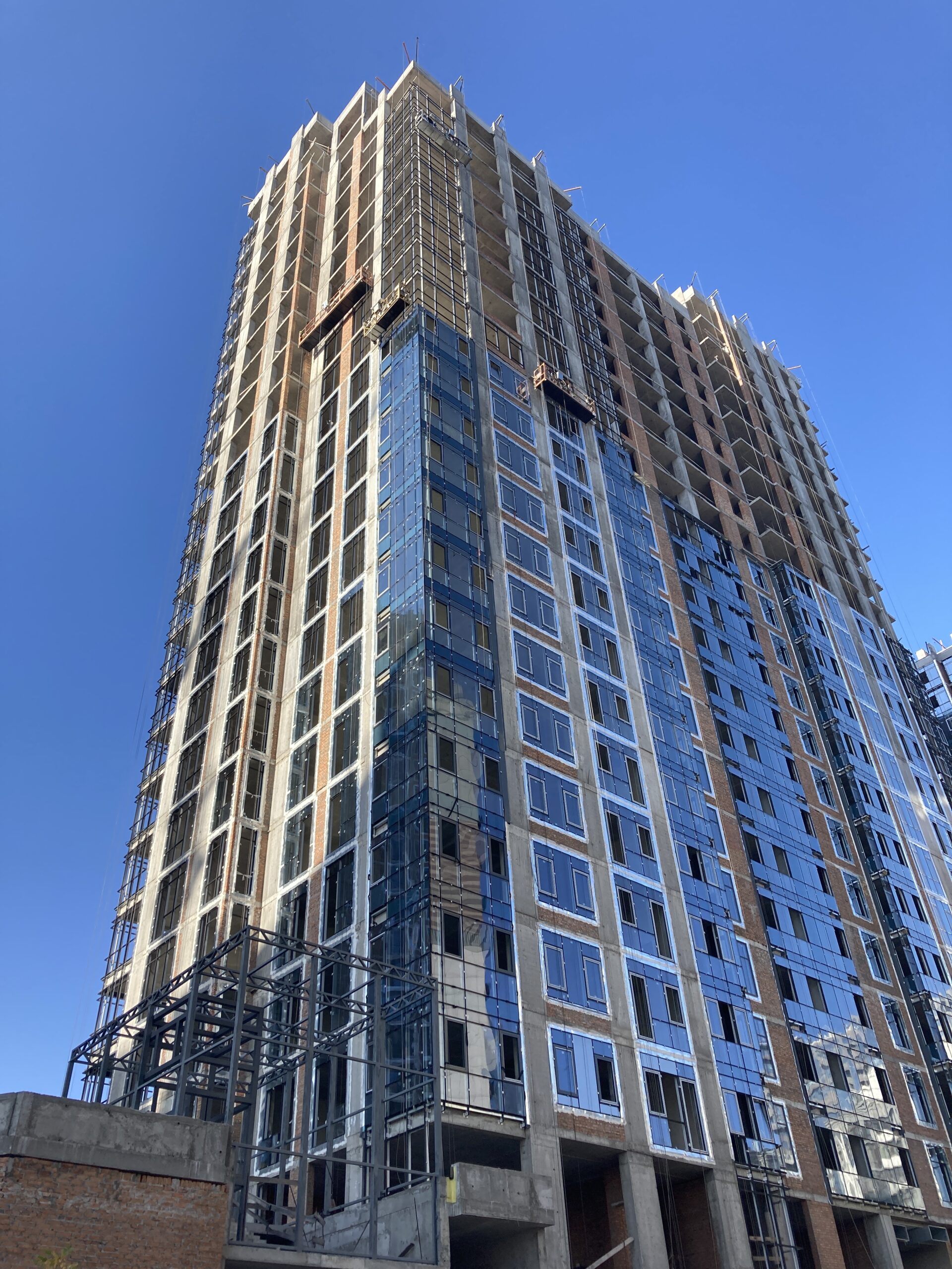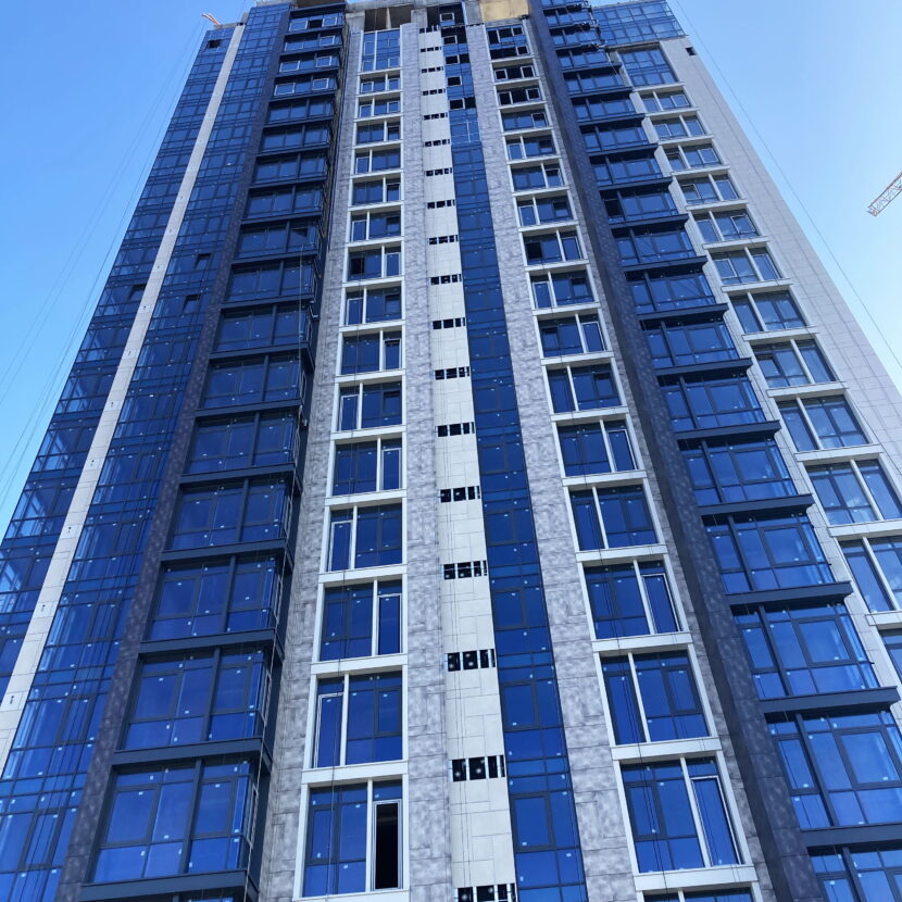 ✅Добігають кінця роботи з влаштування алюмінієвих віконних вітражів с 14 по 24 поверхи. Розпочато скління та встановлення віконних та дверних конструкцій.