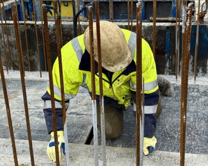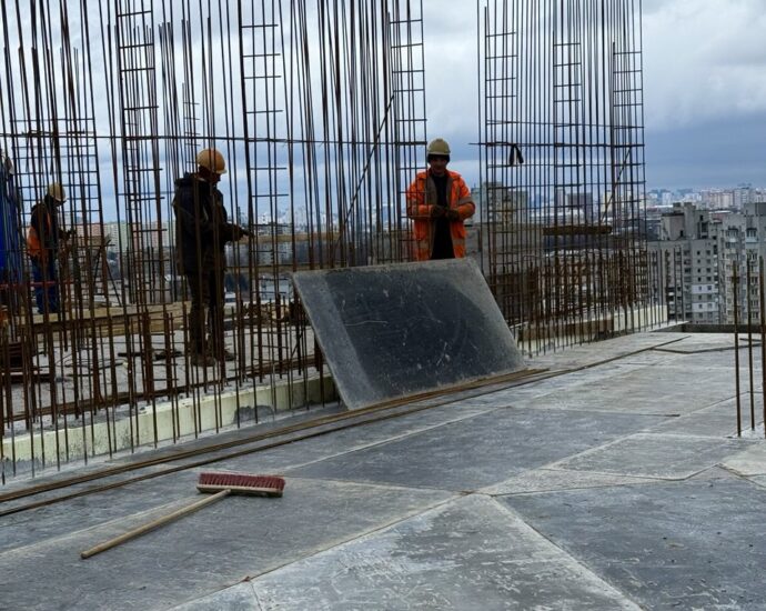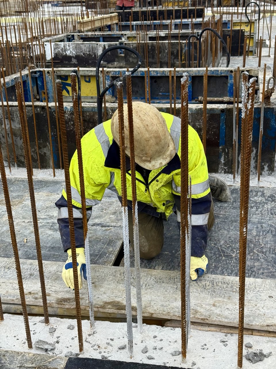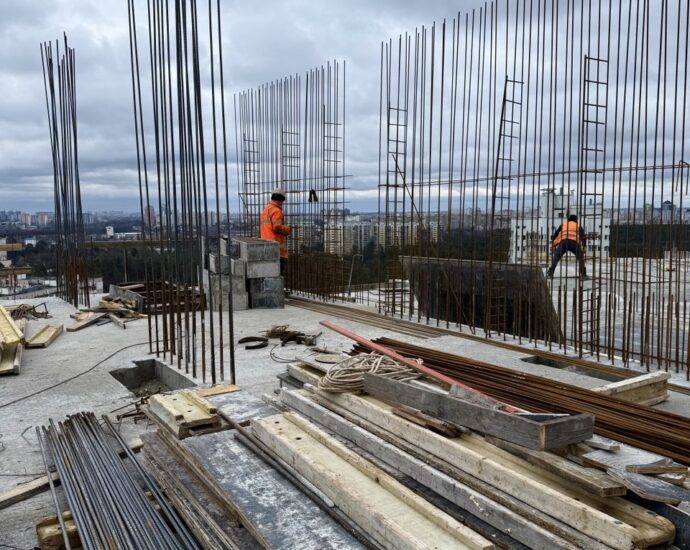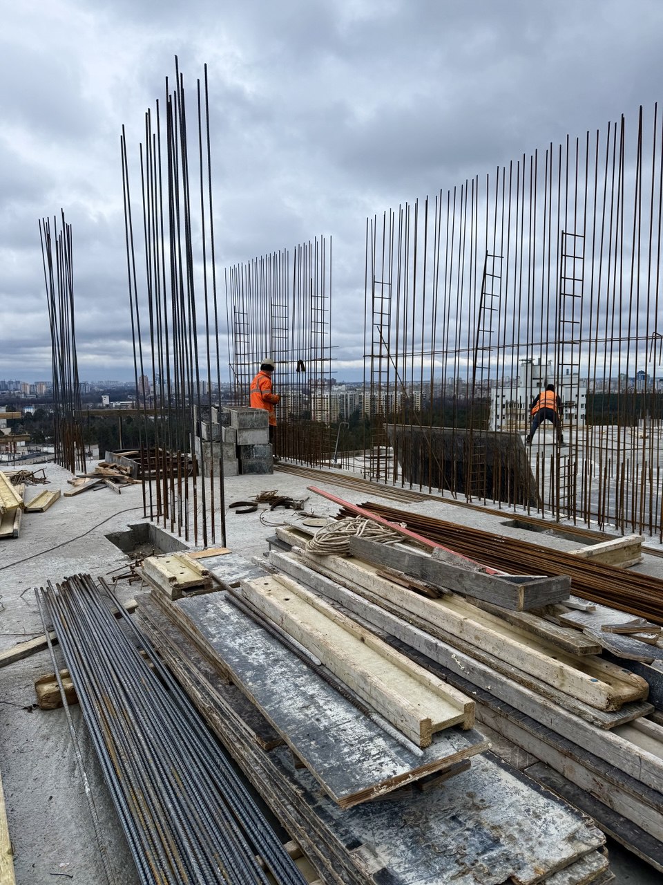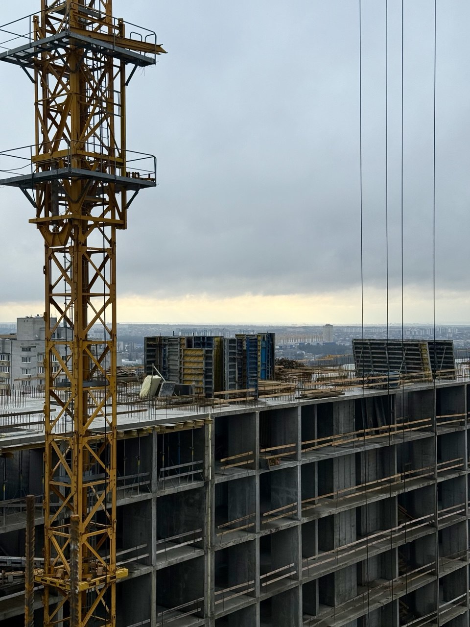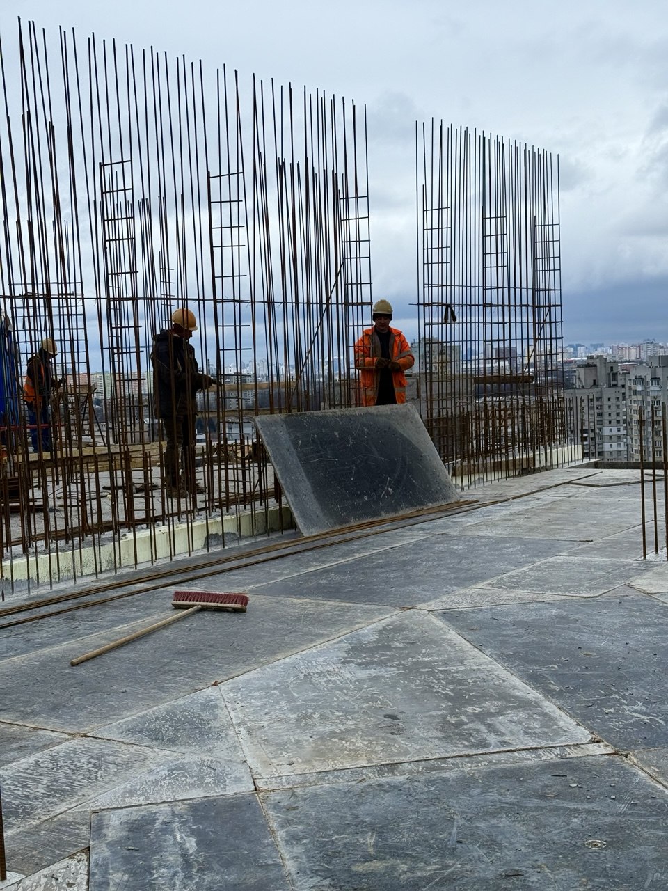 На 20 поверсі влаштовано бетонну підлогу та опалубні системи для наступного етапу бетонування.