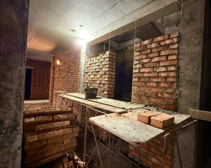 На 3 поверсі розпочалася кладка стін цеглою, що формує майбутню конфігурацію квартир. - 3 секція