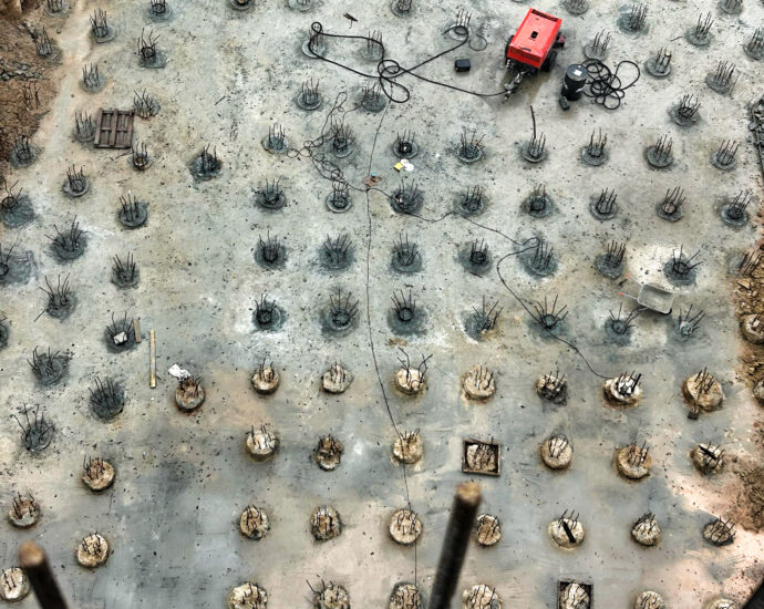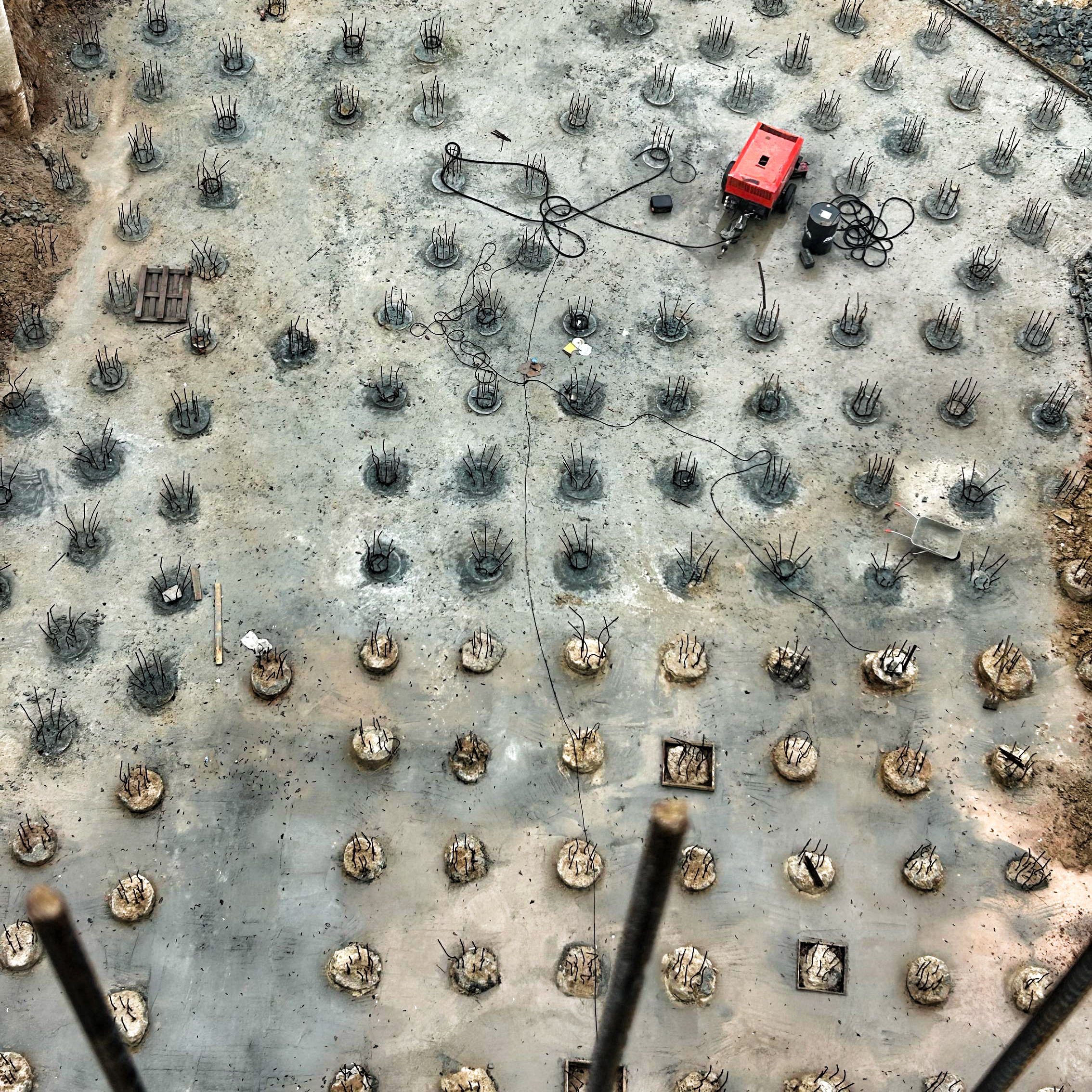 - 1 та 2 секції: Забетоновано фундамент. Тривають підготовчі роботи для зведення монолітного каркаса секцій.