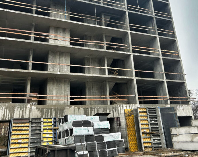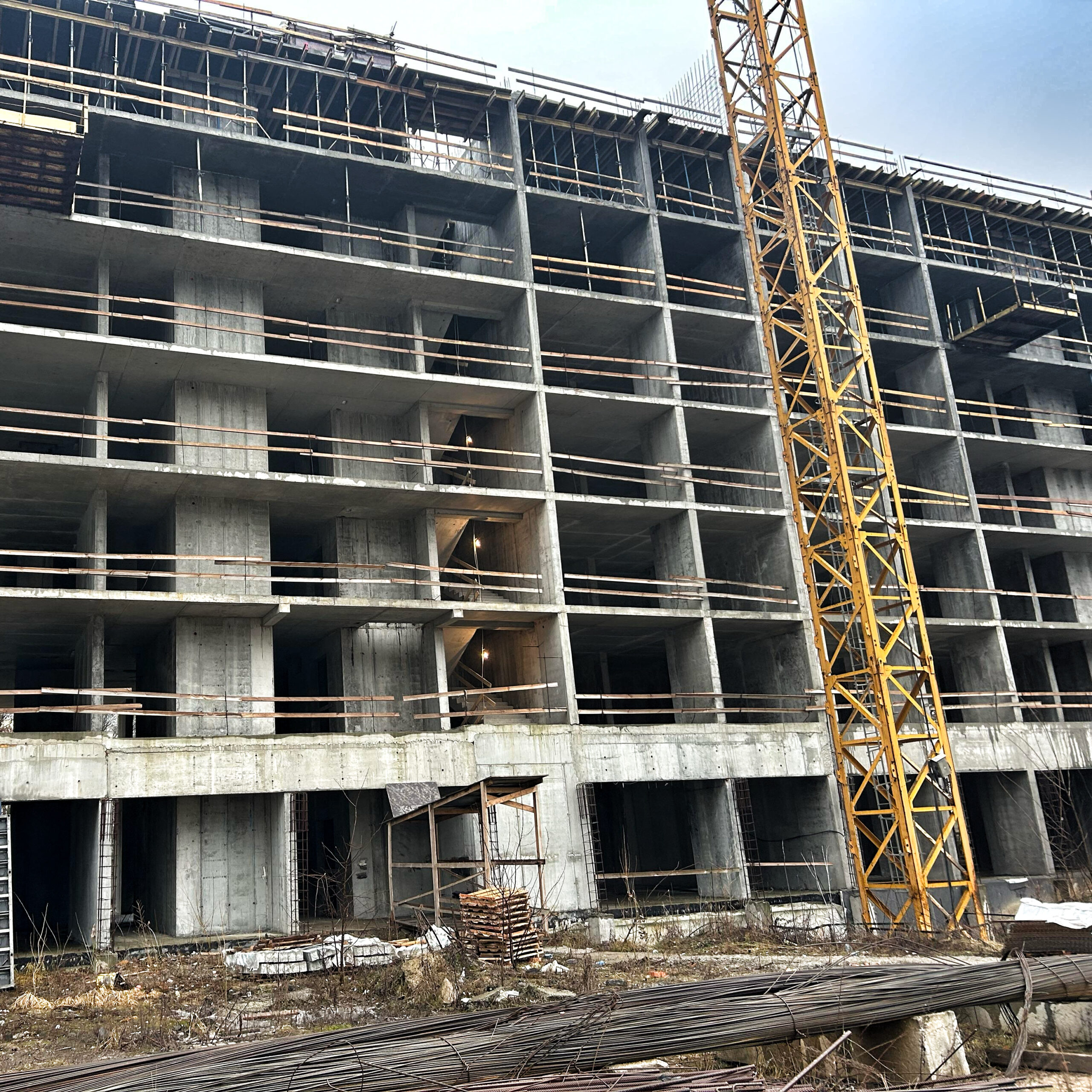 - 3 та 4 секції: Повністю готові бетонний каркас та стеля 7 поверху обох секцій.