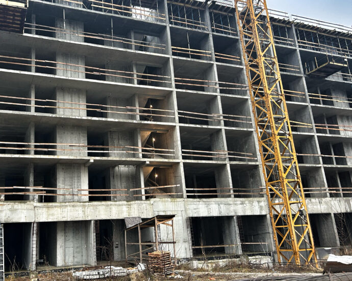 - На рівні 13 поверху продовжуються будівельні роботи.