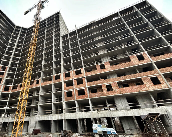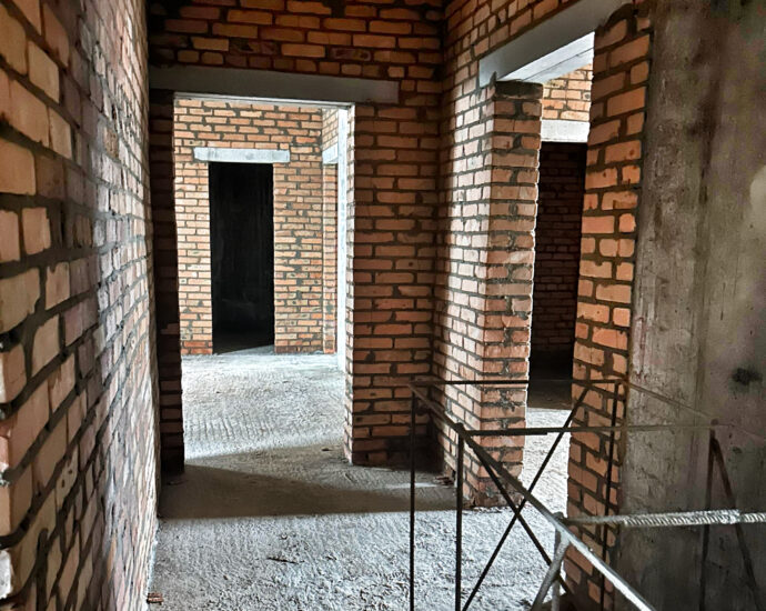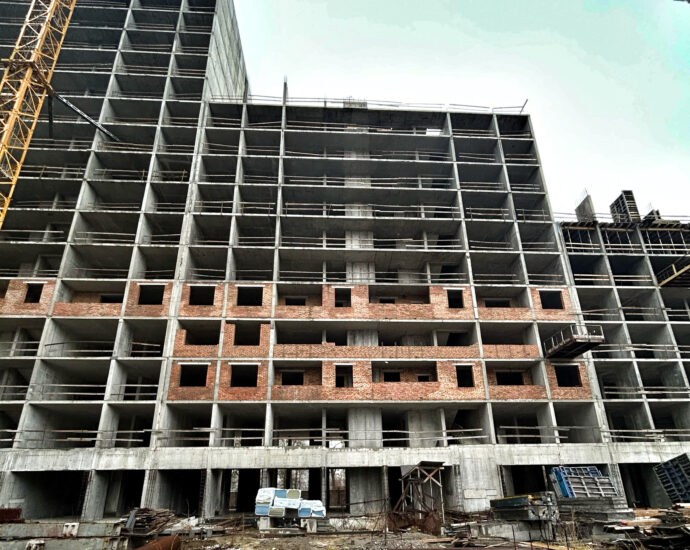 - 1 секція: Завершено вкладання цегли для внутрішніх та зовнішніх стін на 3 поверсі, роботи на 4 поверсі тривають.