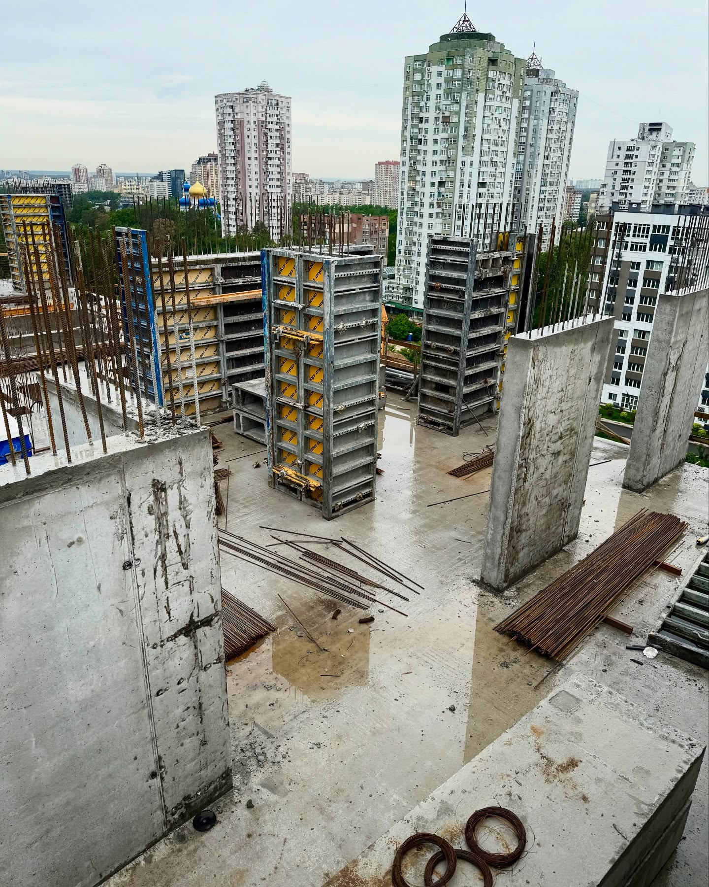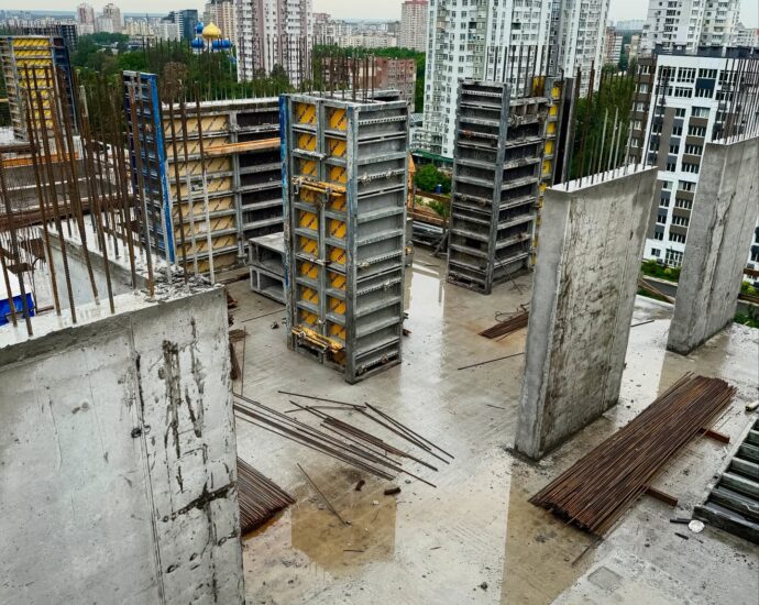 - 3 секція – монолітний каркас досяг 14 поверху, триває формування опорних колон.