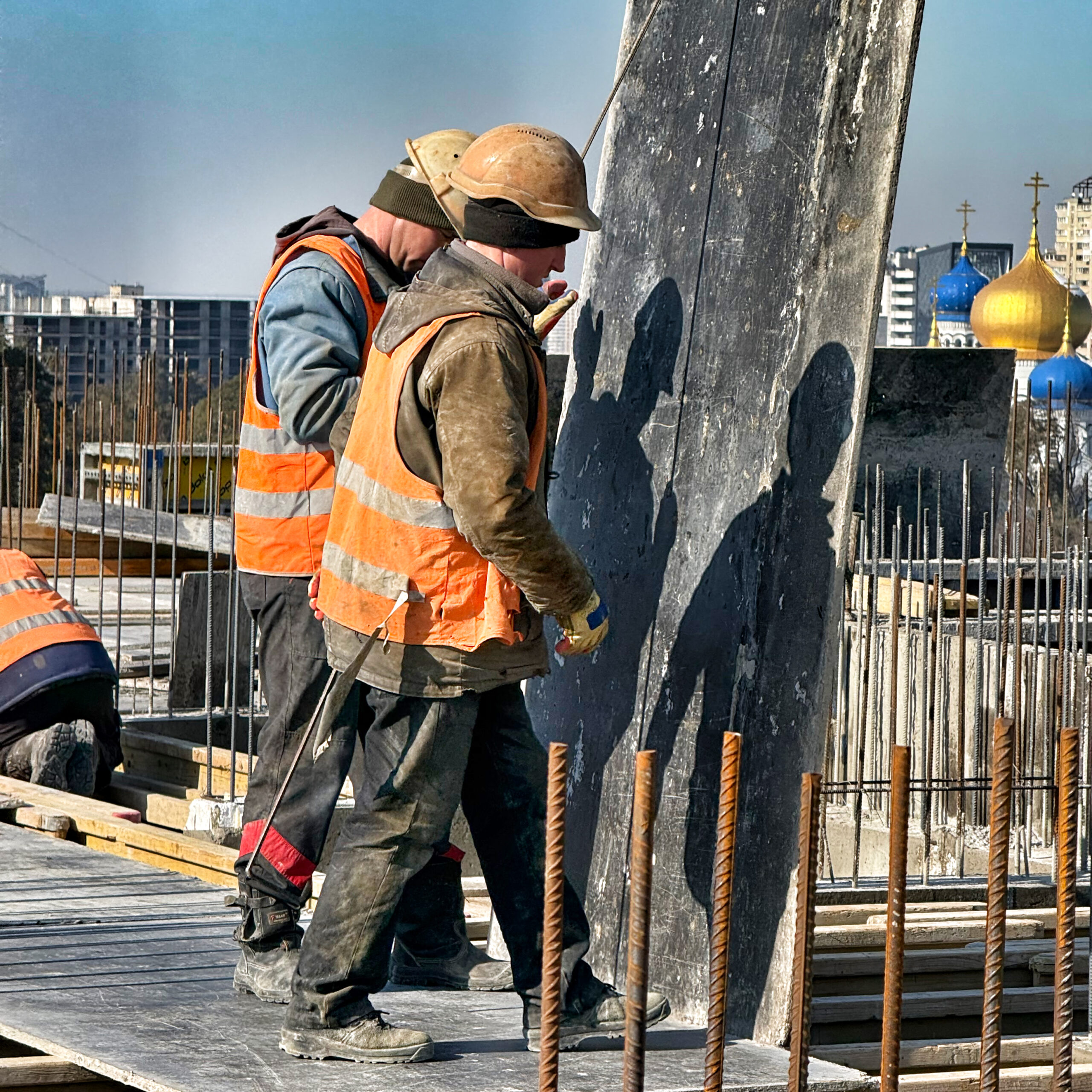 - Проводяться роботи зі встановлення арматури та опалубки для залиття колон та несучих елементів під каркас 10 поверху.
