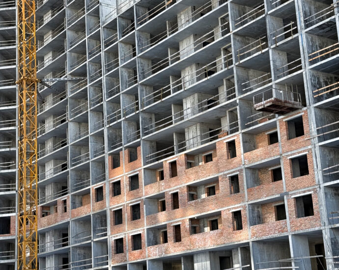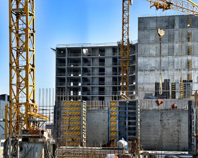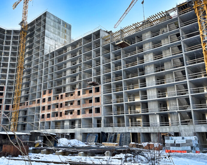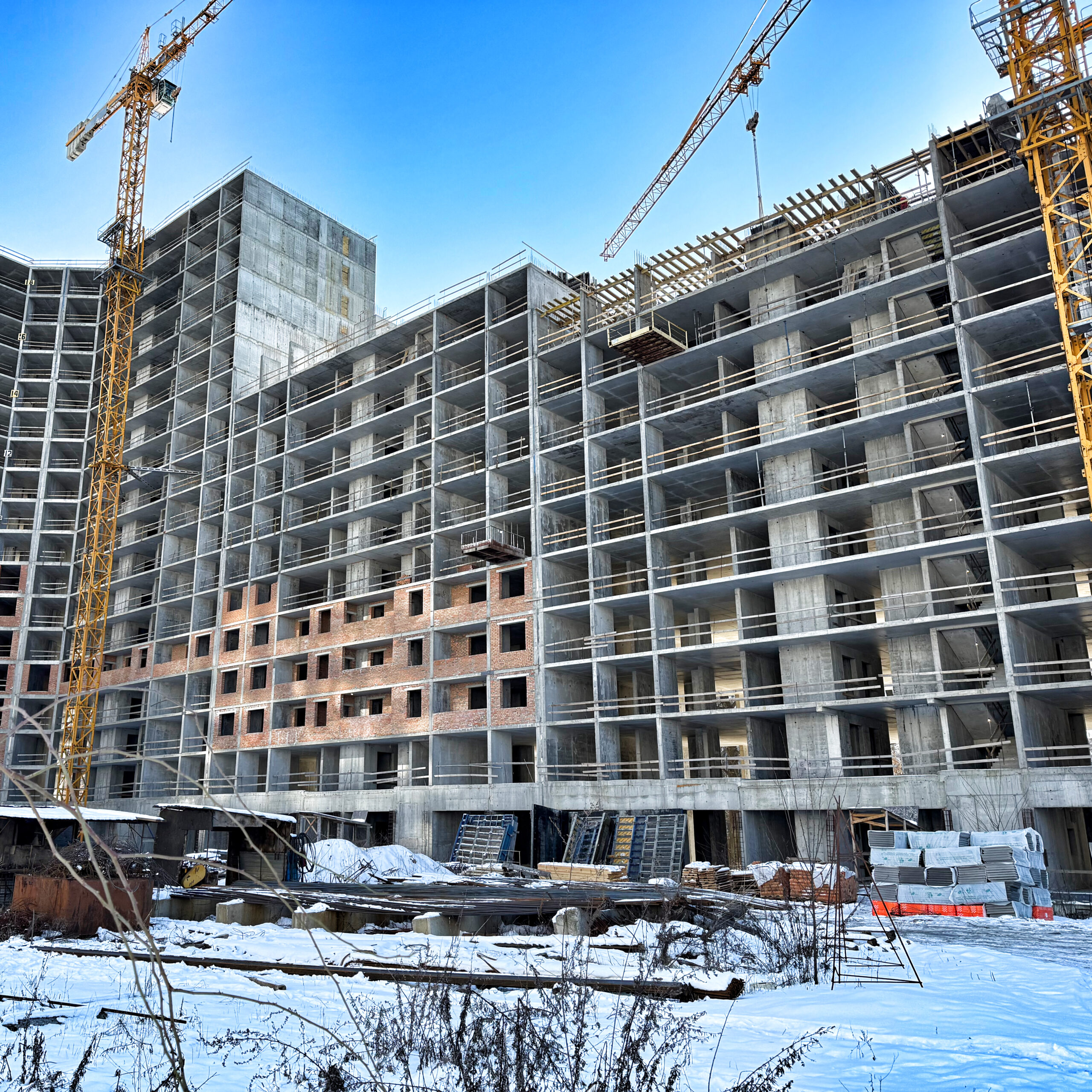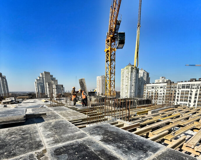 - Готовий каркас та підлога, розпочато будівельні роботи на 10 поверсі.