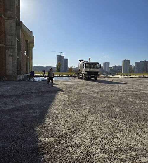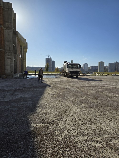 - Виконуються роботи з улаштування покрівлі паркінгу