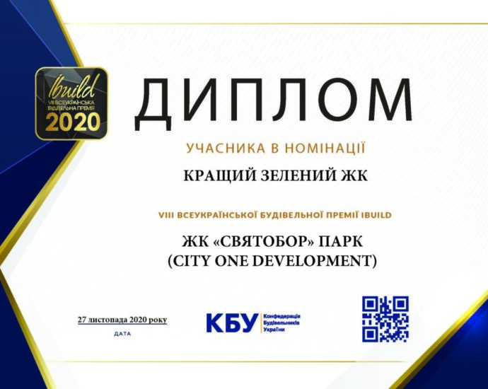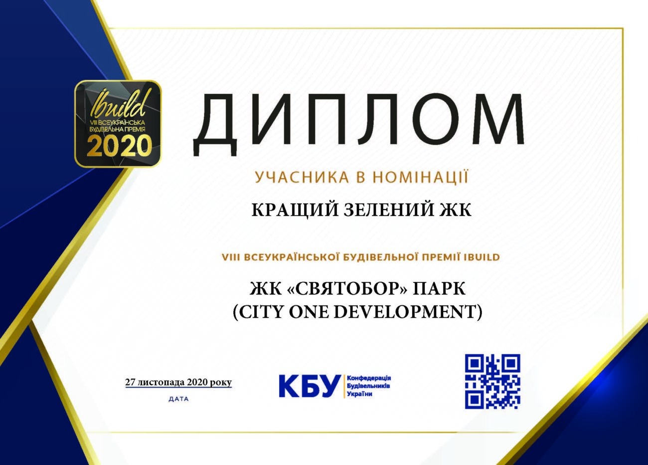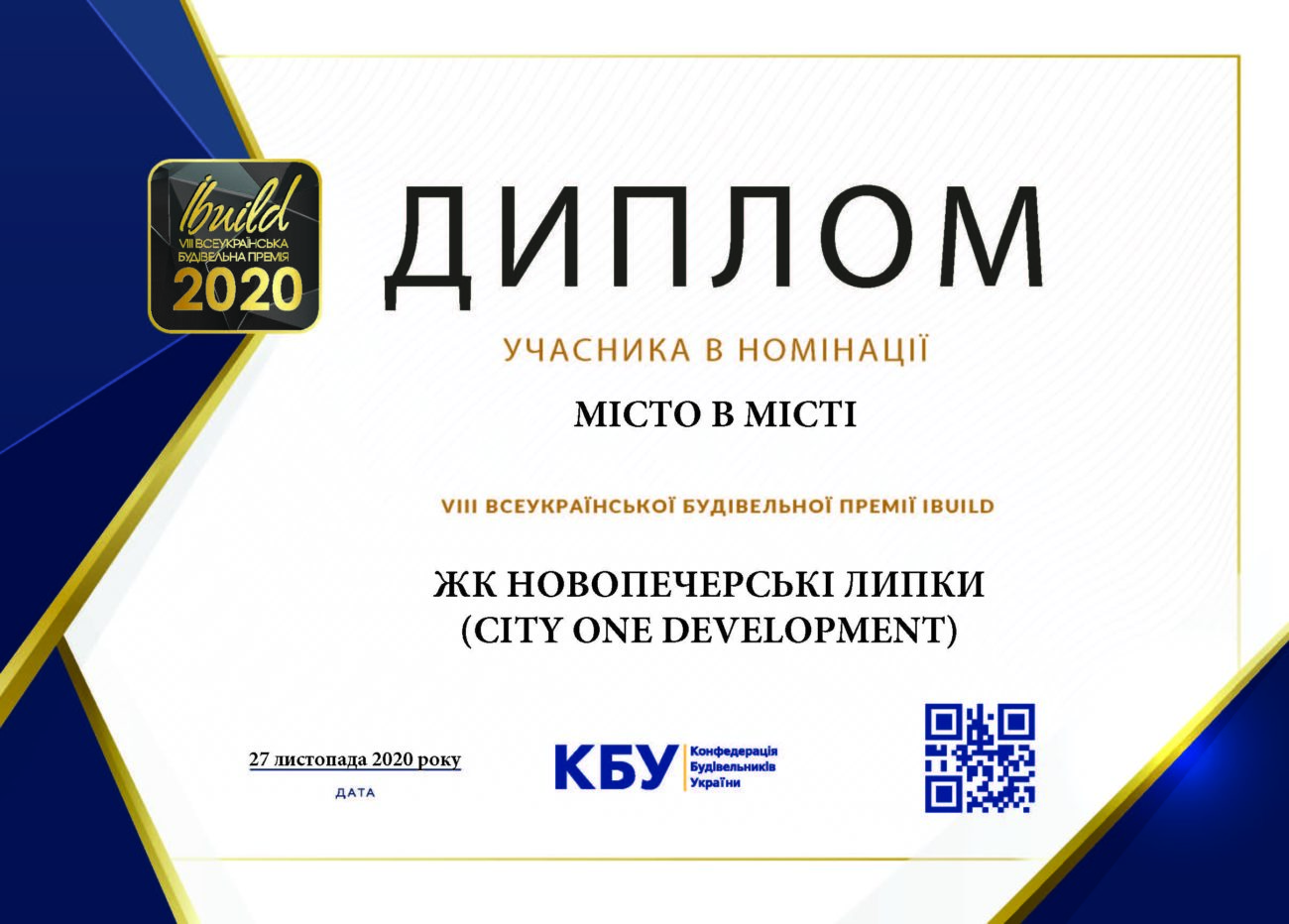 Днями столичні проєкти компанії City One Development – житловий комплекс комфорт-класу “Святобор” Парк Резорт та житловий квартал бізнес-класу “Новопечерські Липки” отримали дипломи номінантів Всеукраїнської будівельної премії IBuild. Проєкти номіновані в категоріях : Місто в місті та Кращий зелений ЖК. Також номінантом стала й сама компанія City One Developement, яка змагатиметься за право бути кращою серед конкурентів у номінації “Вибір споживача”. У 2020 році, як і всі роки раніше, компанія продемонструвала ринку позитивну динаміку розвитку своїх проєктів та стабільні темпи будівництва. А кількість кв. метрів, що було введено в експлуатацію в цьому році, попри непростий рік та велику кількість обмежень, є беззаперечним доказом стабільності та сталого розвитку компанії. Тож тримаємо кулаки та маємо сподівання на вірний вибір клієнтів та експертів, який вже буде оголошений дуже скоро.