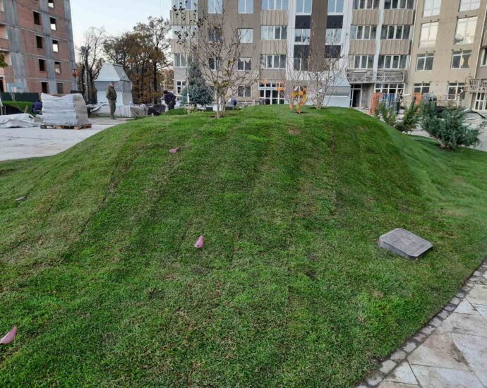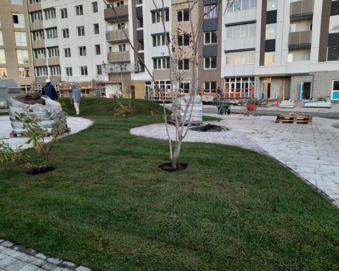 Також тривають роботи по укладанню пішохідних доріжок та рулонного газону на територіях для відпочинку мешканців ЖК. Завершуються роботи з висадки дерев та облаштуванню квітників. Нагадаємо, що більше тритини території проектів від City One Developement – це зелені зони для прогулянок та відпочинку, а таких – вже понад 10 га у місті!