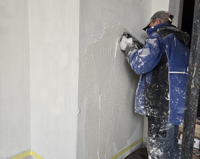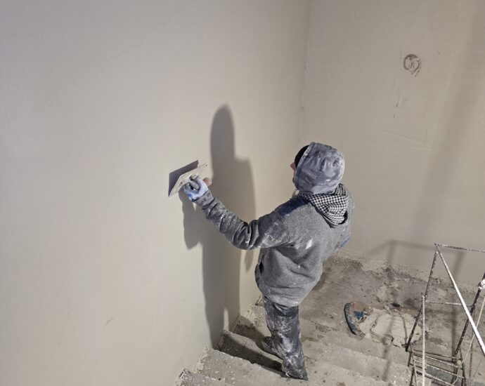 Розпочато оздоблювальні роботи у внутрішніх спільних просторах будинку.