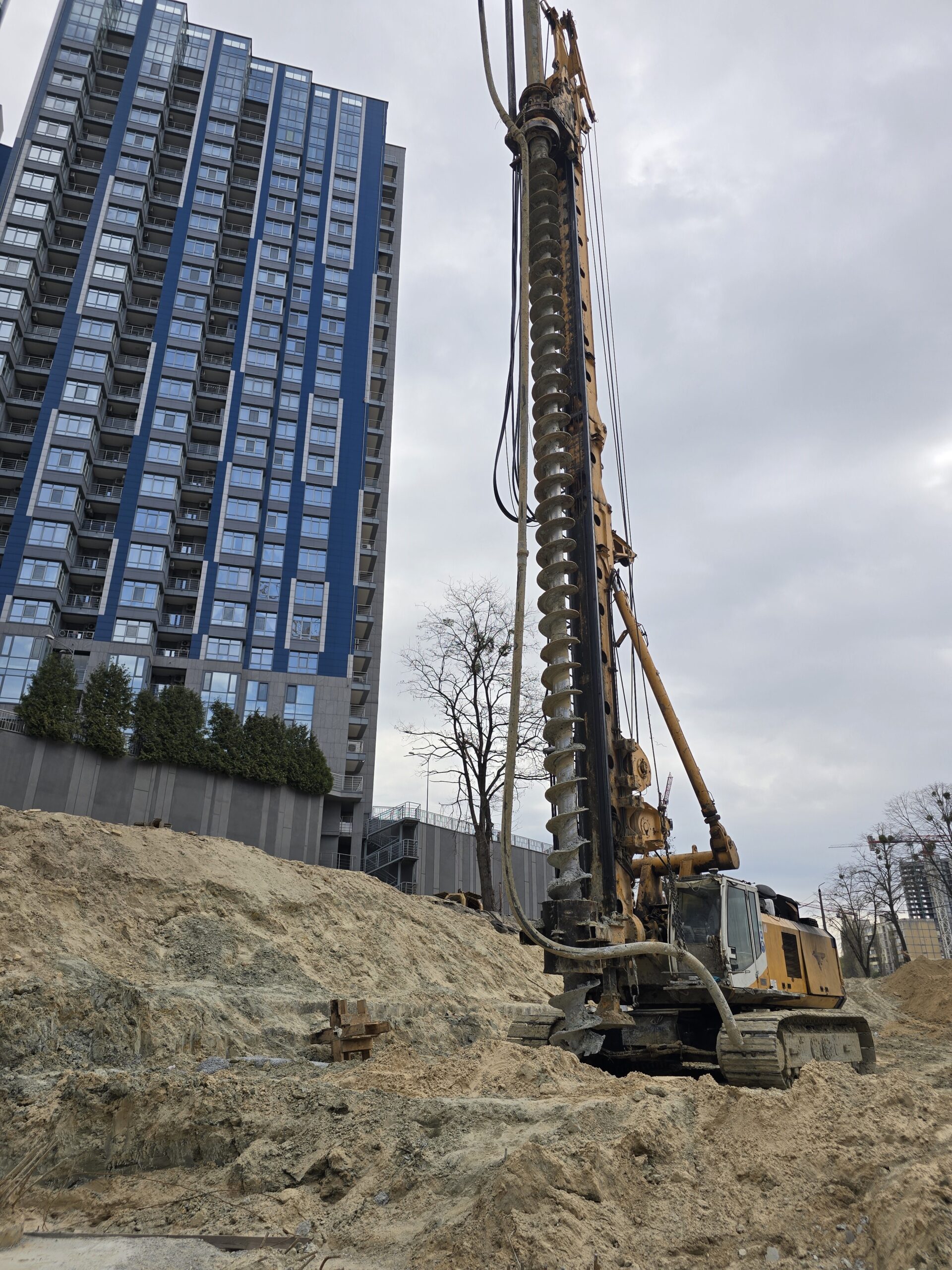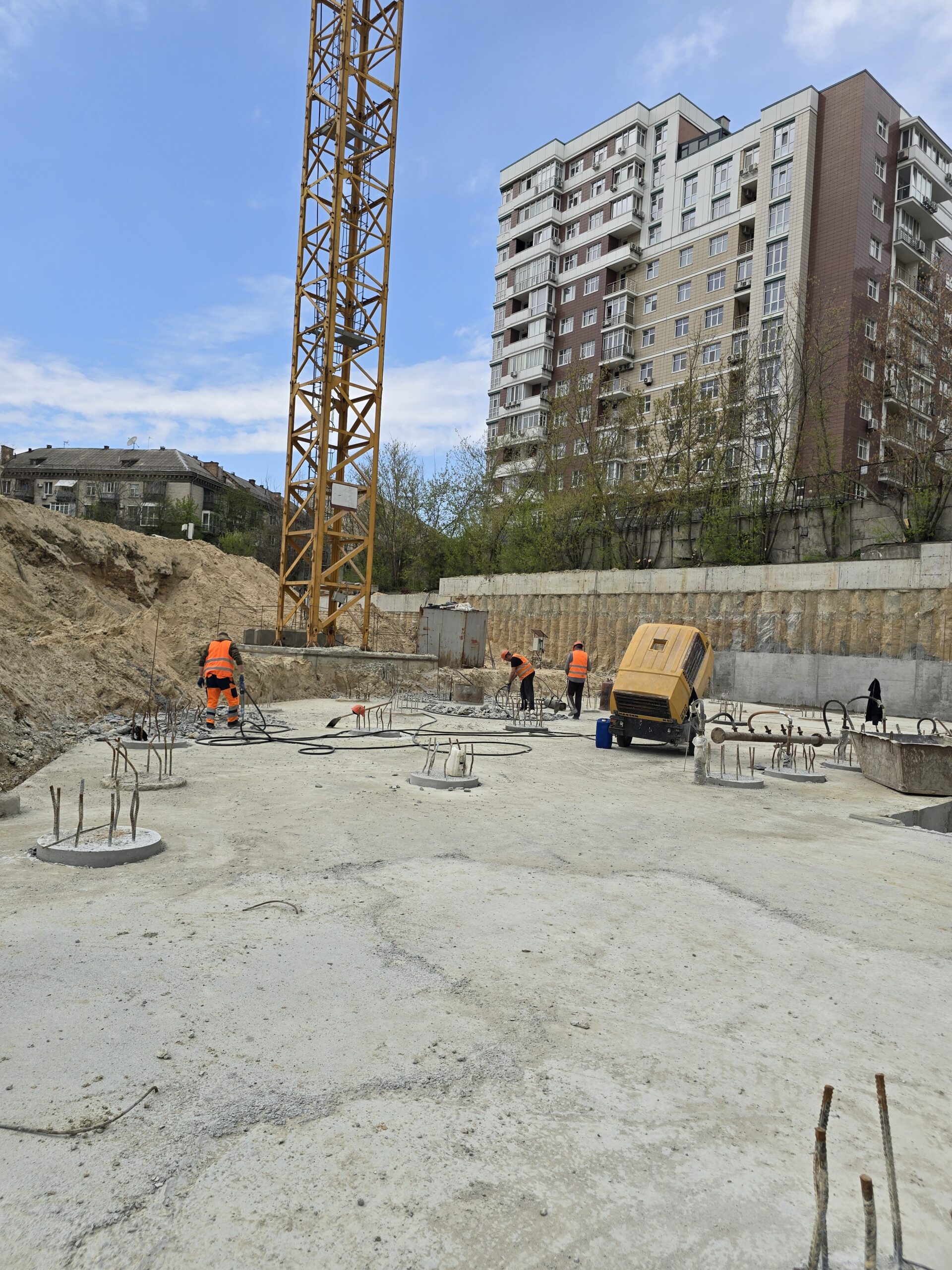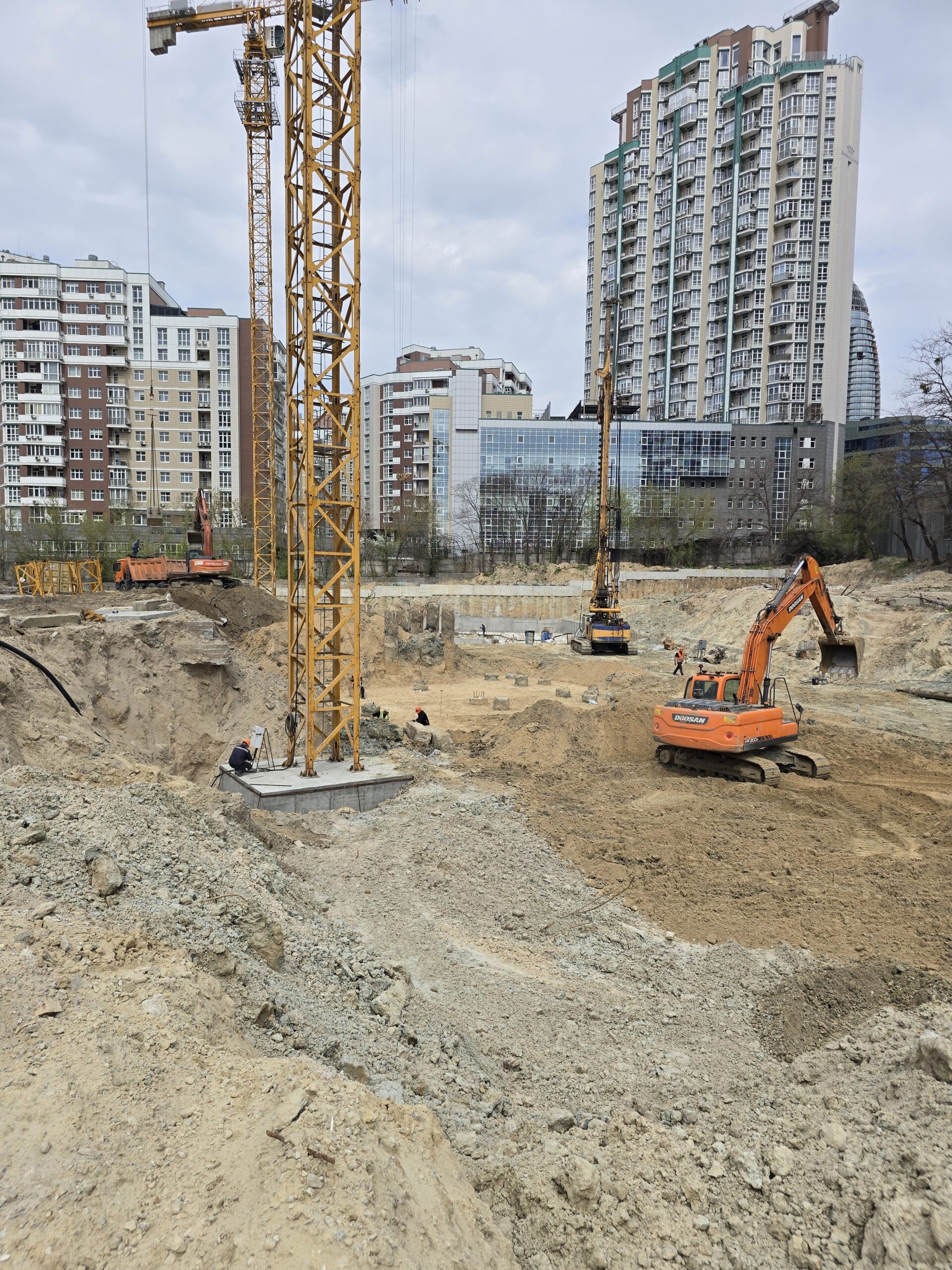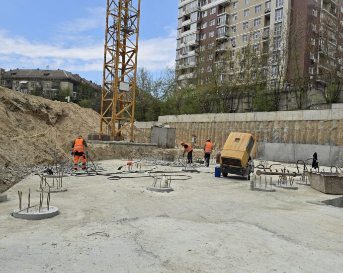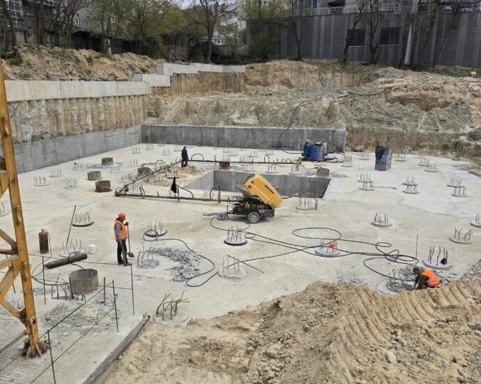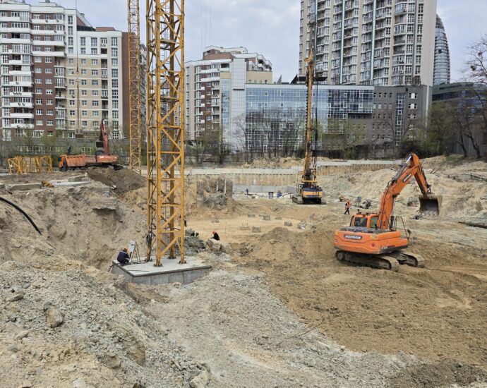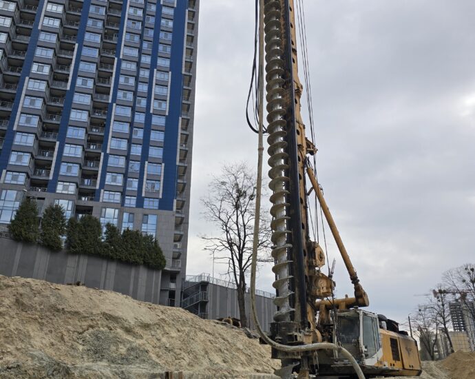 Серед ключових виконаних та розпочатих робіт – встановлення баштового крана для будівництва будинку №8 та паркінгу, а також облаштування фундаменту й монтаж кореневої секції крана для будинку №6. Водночас для будинку №6 вже завершено влаштування паль під фундамент. Розпочато роботи зі створення шпунтового огородження котловану, а також підготовку пальового поля під фундаментну плиту будинку №8.