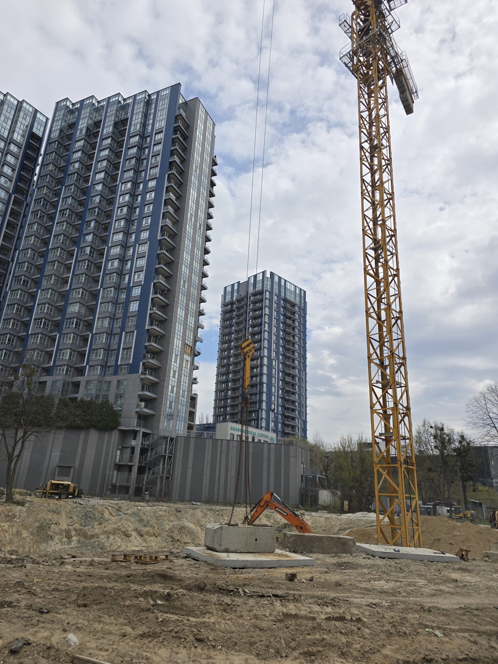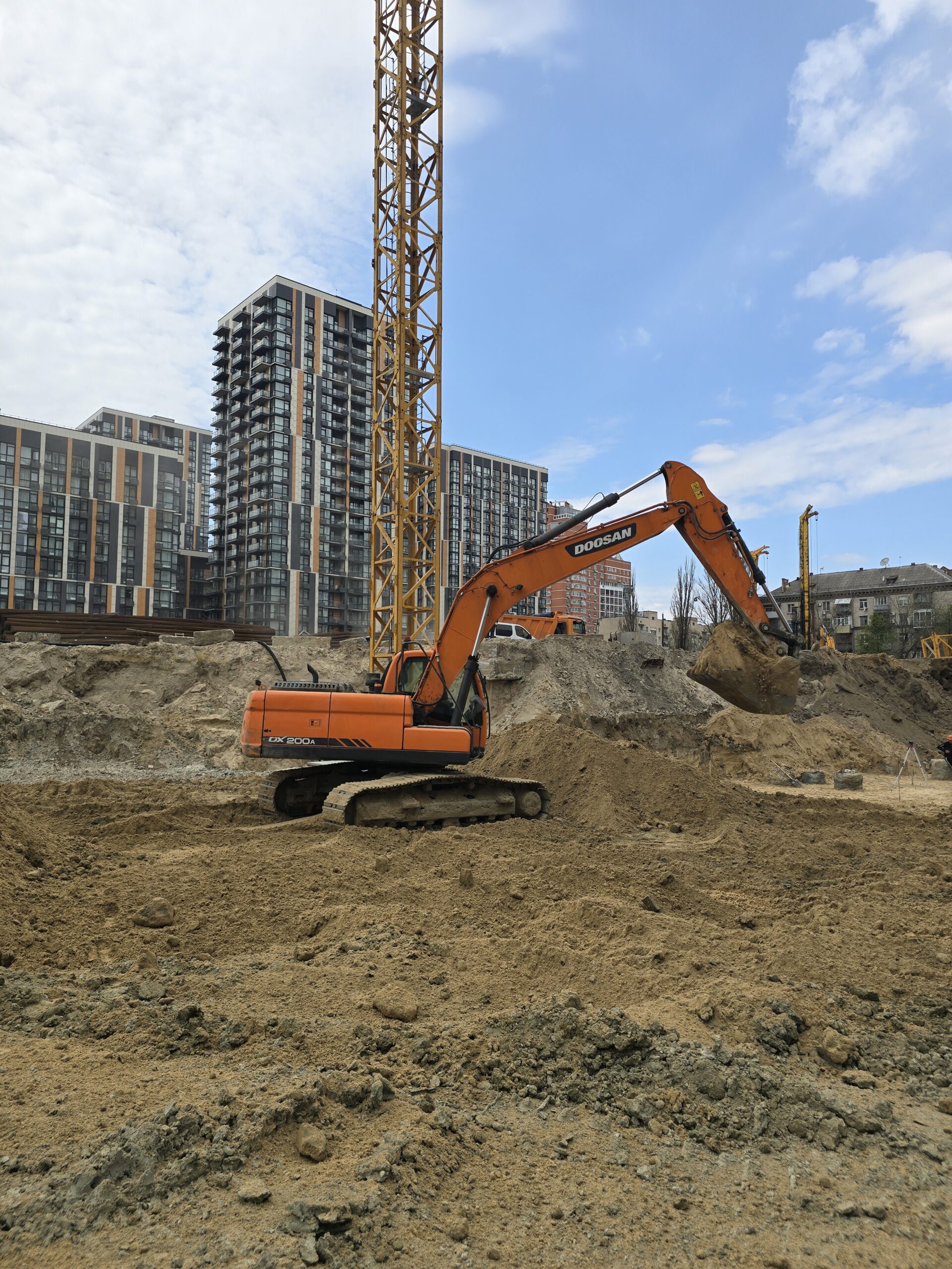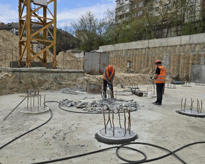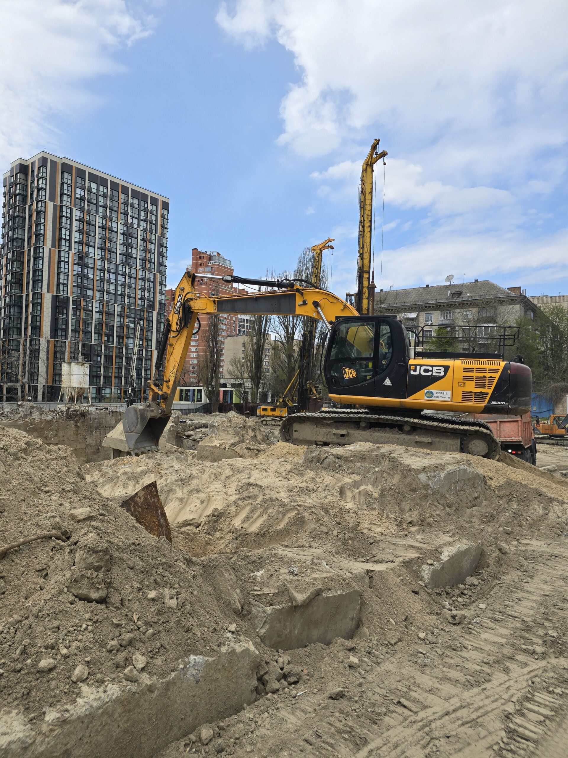 Серед ключових виконаних та розпочатих робіт – встановлення баштового крана для будівництва будинку №8 та паркінгу, а також облаштування фундаменту й монтаж кореневої секції крана для будинку №6. Водночас для будинку №6 вже завершено влаштування паль під фундамент. Розпочато роботи зі створення шпунтового огородження котловану, а також підготовку пальового поля під фундаментну плиту будинку №8.