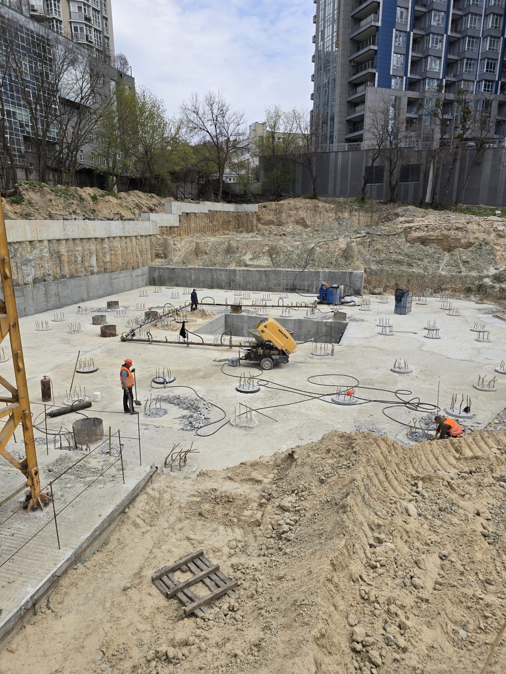 Значний обсяг робіт зосереджений і на підземній частині комплексу: триває влаштування паль фундаментів паркінгу четвертої черги, активно ведеться розробка її котловану. Розпочато розробку котловану паркінгу третьої черги, а також виконується влаштування ростверку шпунтового огородження паркінгу під будинками №5 та №7.