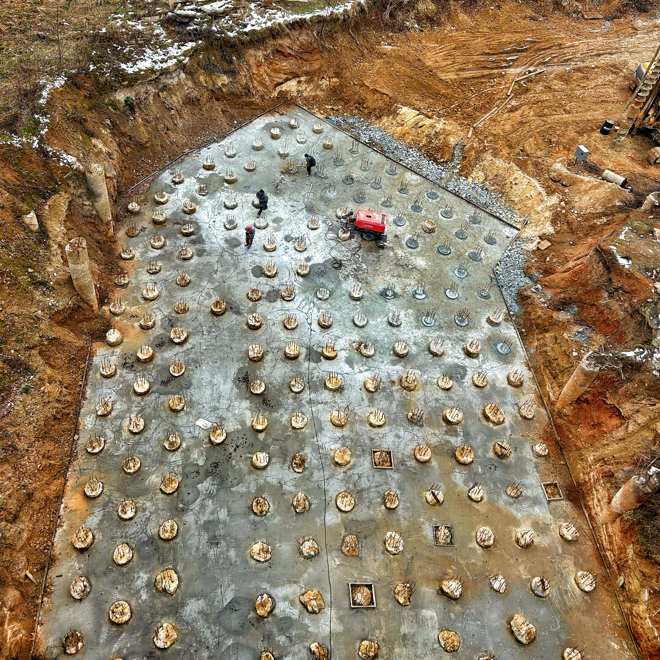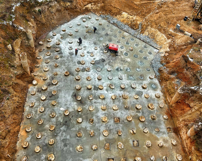 - 1 та 2 секції: Завершені роботи з риття та бетонування котловану. Розпочаті підготовчі роботи для зведення монолітного каркаса секцій.